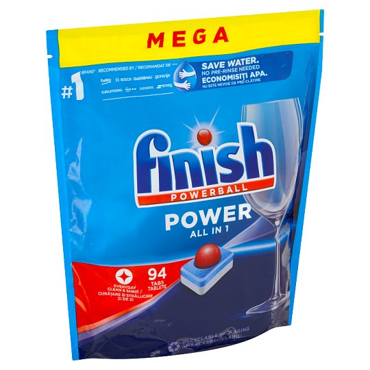 Viên rửa bát finish all in one là sự kết hợp của công thức enzyme đặc biệt tiên tiến với các thành phần độc đáo cùng nhiều tính năng ưu việt, có sức mạnh tẩy sạch chất dầu mỡ và thức ăn thừa bám trên chén đĩa kèm theo khả năng diệt khuẩn, làm bóng chén đĩa, các đồ sành sứ, thủy tinh, inox, dụng cụ nhà bếp, đặc biệt đánh bóng bề mặt thép không gỉ và đem lại hương thơm tươi mát dài lâu.