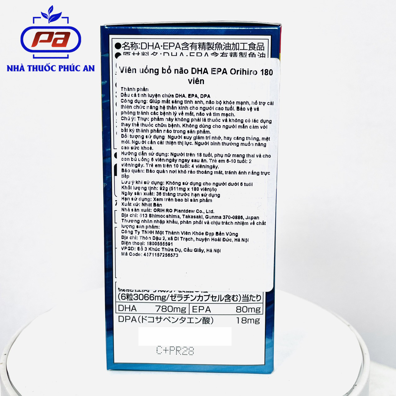 Viên uống bổ não, mắt, tim mạch Orihiro DHA EPA Nhật Bản 180 viên NHÀ THUỐC PHÚC AN + Chuyên cung cấp thực phẩm chức năng, mỹ phẩm, dụng cụ y tế. + Cam kết