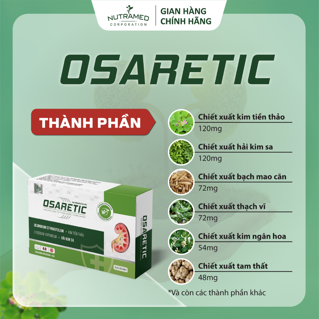 OSARETIC - Giải pháp giúp tăng cường đào thải cặn lắng trên đường tiết niệu, giảm nguy cơ sỏi tiết niệu, sỏi mật