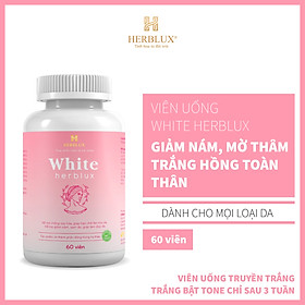 Viên uống trắng da White Herblux được phân phối rộng rãi tại các Spa trên toàn quốc với công dụng TRẮNG HỒNG DA, SÁNG MỊN DA, GIẢM NÁM SẠM, MỜ THÂM MỤN, bổ sung COLLAGEN, tăng cường NỘI TIẾT TỐ NỮ.