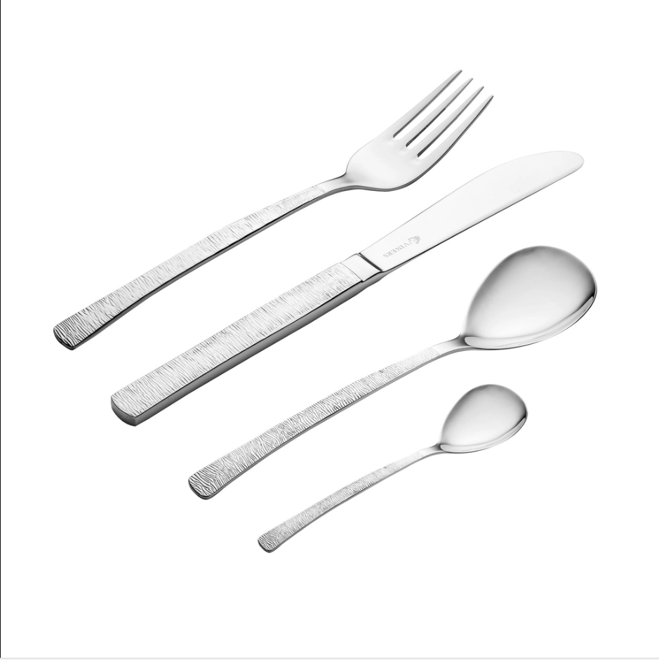 Bộ sản phẩm bao gồm: 4 dao bàn ăn, 4 nĩa bàn ăn, 4 muỗng trà, 4 muỗng tráng miệng.