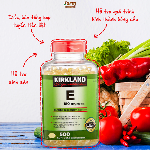 - Vitamin E Mỹ Kirkland Signature Vitamin E 180mg (400 IU) 500 Viên giúp điều trị và duy trì sức khỏe và làm đẹp da và tăng cường sức khỏe, hỗ trợ sức khỏe của hệ tuần hoàn qua việc ngăn ngừa quá trình oxi hóa cholesterol LDL, các tình trạng gây tổn thương tế bào.