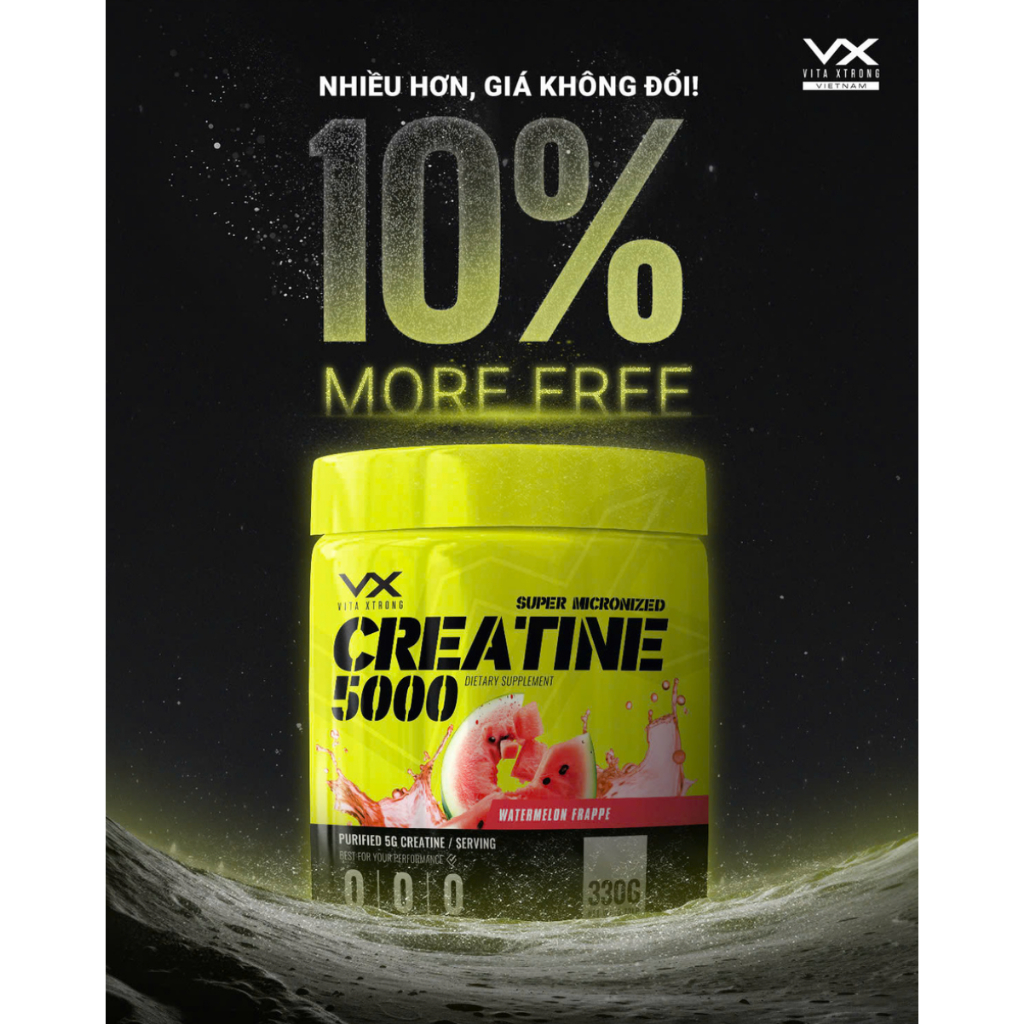 • VitaXtrong Creatine 5000 Super Micronized là sản phẩm thực phẩm bổ sung Creatine tinh khiết ở dạng Micronized hấp thụ nhanh chóng và hiệu quả, ngoài ra thì hàm lượng Creatine lên đến 5g Creatine cho mỗi lần dùng. Thương hiệu được xuất xứ từ Mỹ cùng nhiều dòng thực phẩm bổ sung chất lượng khác.