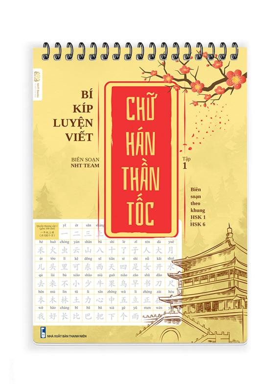 Tập 1: Luyện các nét cơ bản, quy tắc viết chữ Hán, đầy đủ 214 bộ thủ chữ Hán và 1300 chữ Hán in chìm theo trình độ HSK 1-3
