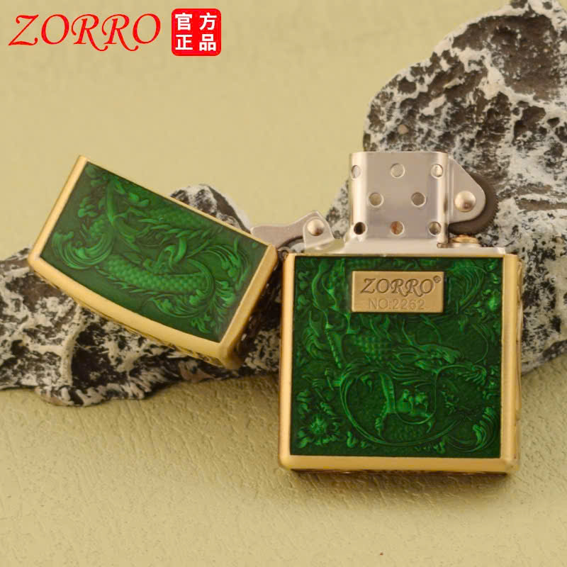 ✨Vỏ Hộp Quẹt, Bật lửa Zorro Cao Cấp Họa Tiết Rồng Xanh Lục Bảo