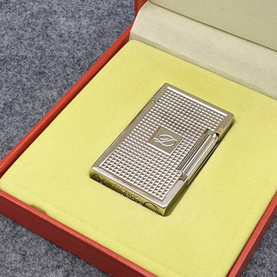 Hộp Quẹt Bật Lửa Ga Đá Dupont D05T, Họa Tiết Kẻ Khắc Chữ Tuyệt Đẹp