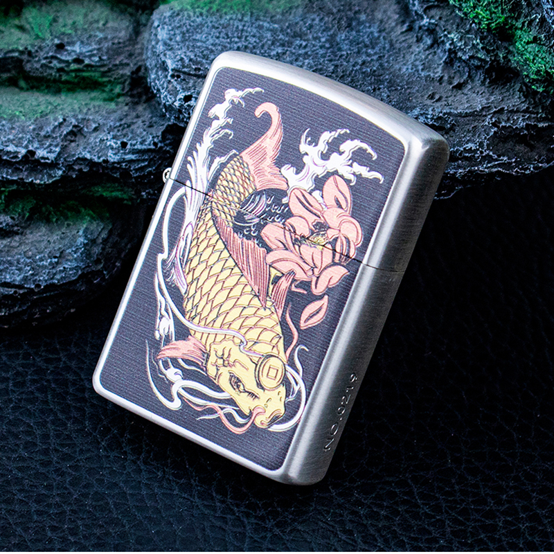 ✨Vỏ Hột Quẹt Bật Lửa Xăng Đá Zorro Z2-1117 Họa Tiết Cá Chép Quần Hội Ao Sen Cực Đẹp Đem Lại May Mắn