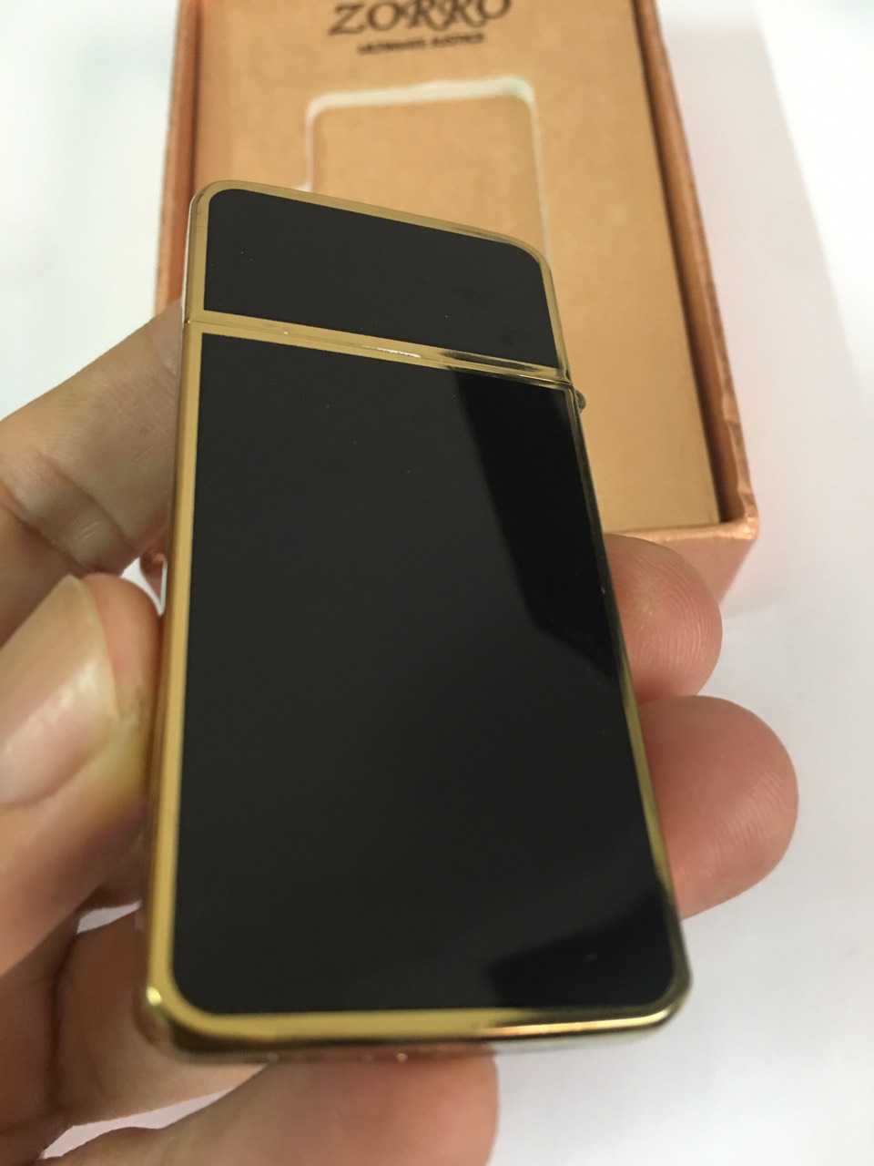 Hộp quẹt bật lửa xăng đá siêu mỏng Zorro ZC5 sơn mài đen viền vàng #batluadocla #batluadep #zorro