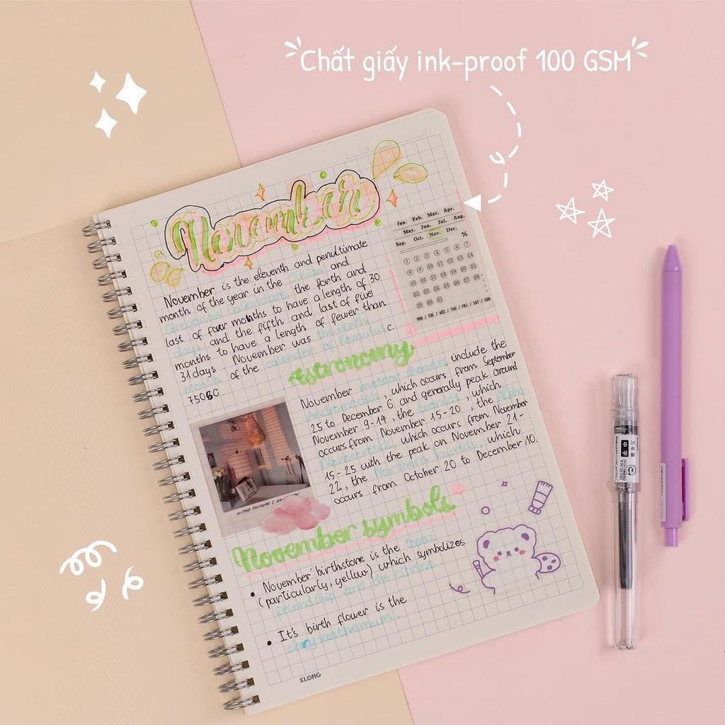 [SHORT REVIEW] Vở lò xo kép Caro KlONG B5 bìa nhựa-120 trang- Màu pastel (Link mua trong phần mô tả)
