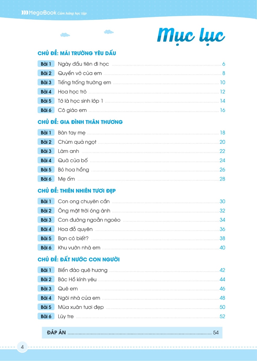 - Sách được chia làm 2 phần chính: Phần bài tập: Được trình bày theo 4 chủ đề, mỗi chủ đề là 6 bài ôn luyện về âm, vần, đoạn và các chữ hoa có trong Tiếng Việt Phần đáp án: Được biên soạn chi tiết, logic, dễ hiểu và tra cứu dễ dàng