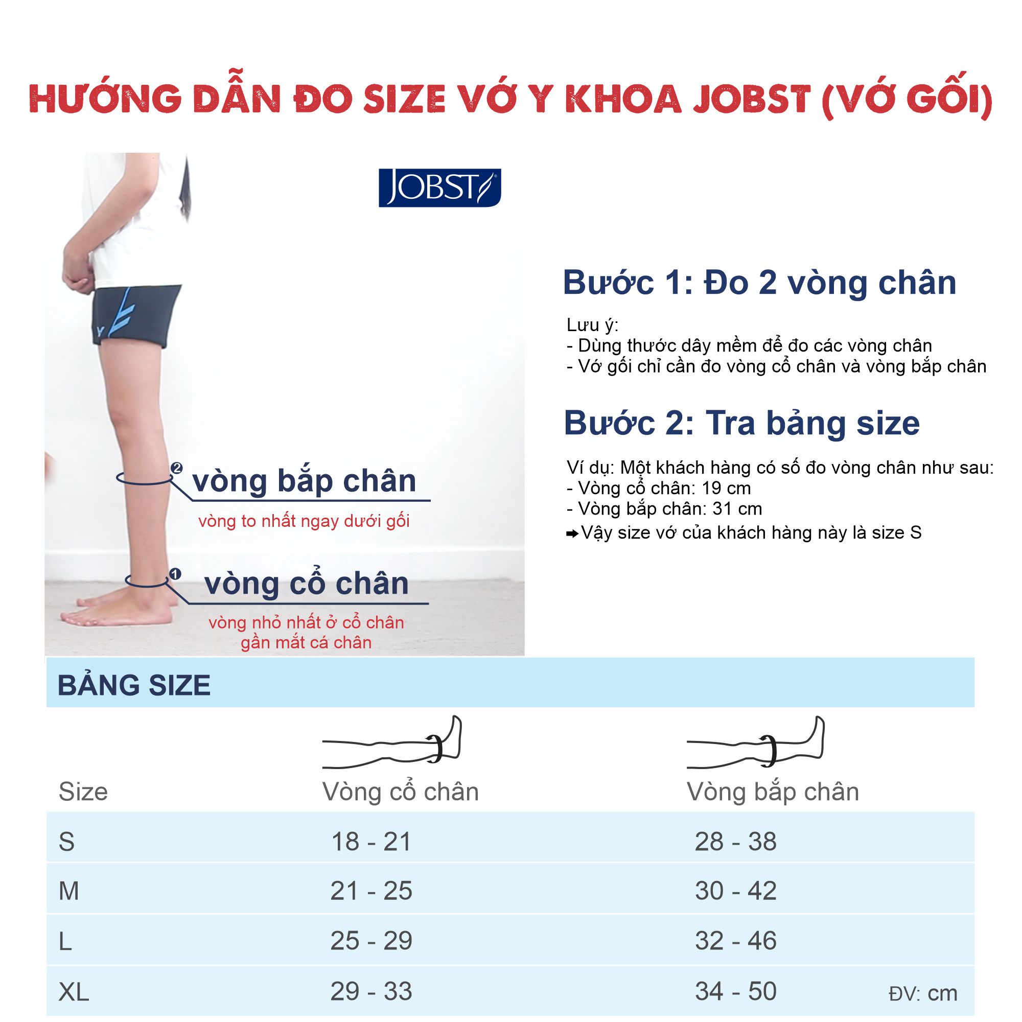 - Chất liệu mềm mại và thoáng khí, giảm tối đa ngứa và kích ứng da. + Độ bền trên 6 tháng. Chứng nhận FDA Mỹ. Mô tả sản phẩm: JOBST áp lực 20-30mmHg, 02 chiếc vớ, kín ngón và tài liệu hướng dẫn kèm theo. Có 04 size: S / M / L / XL ️ CHÍNH SÁCH MUA HÀNG VÌ SAO CHỌN JOBST STYLE