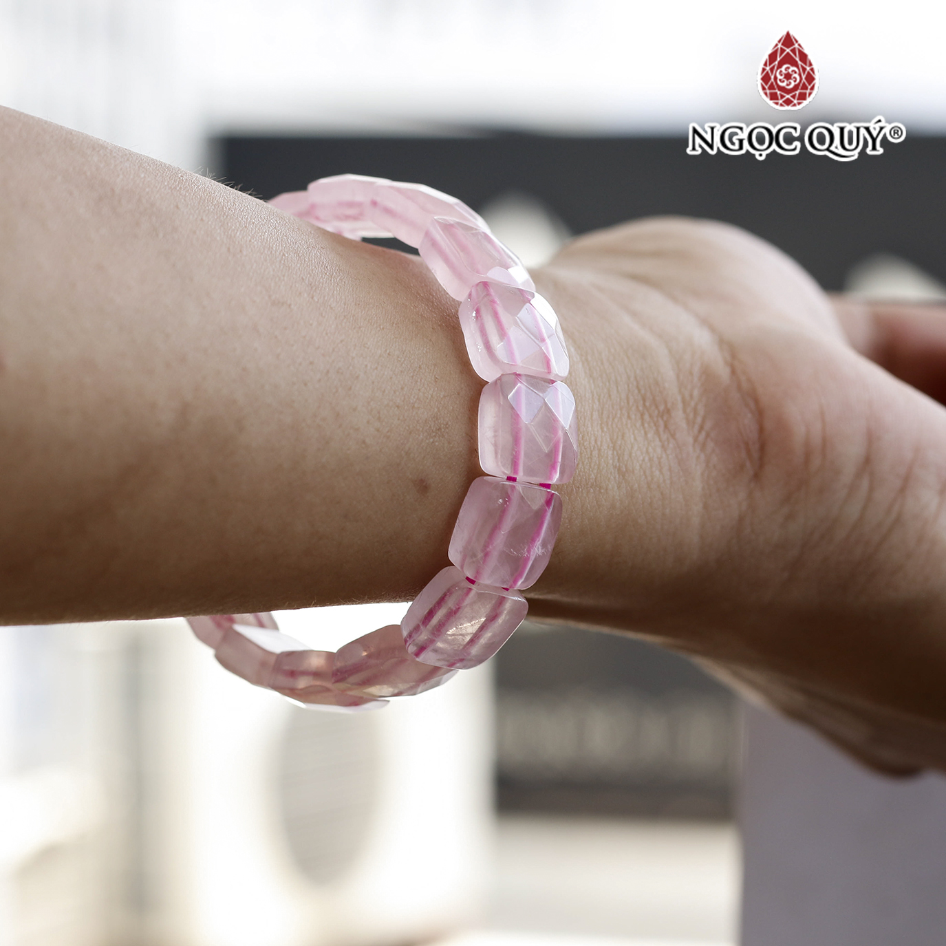 - Vòng Tay Đá Thạch Anh Hồng Mix 7 Chakras Ngọc Quý Gemstones TA014 chứa mangan và titan nên có màu hồng, nhìn trông như làn da tươi trẻ - Thạch anh hồng có màu hồng