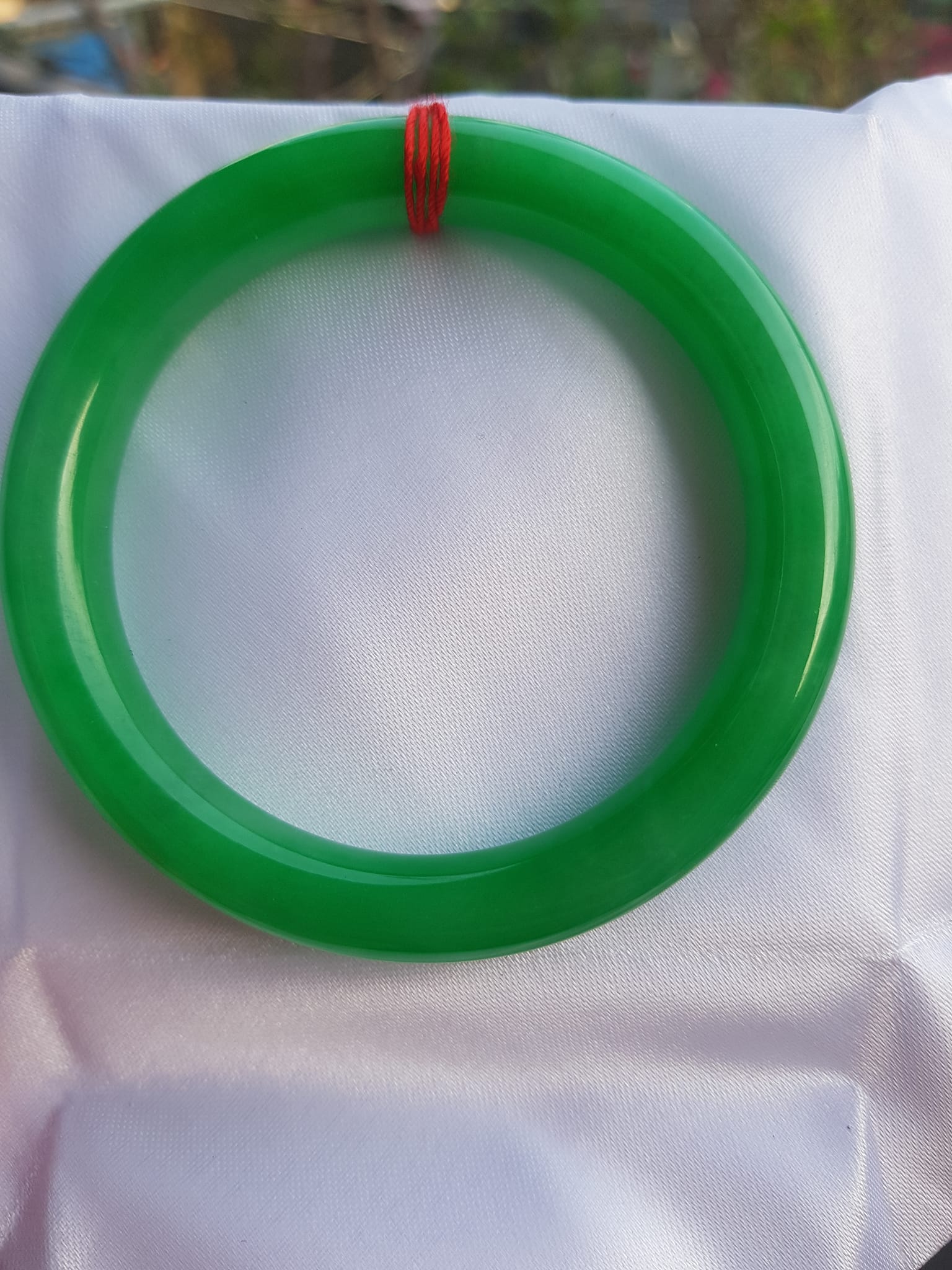 Vòng cẩm thạch Đ Lý 52mm x dầy 7,8mm màu xanh lá tươi hợp Nữ mệnh Mộc mệnh Hỏa 52kg - 56kg đeo ạ