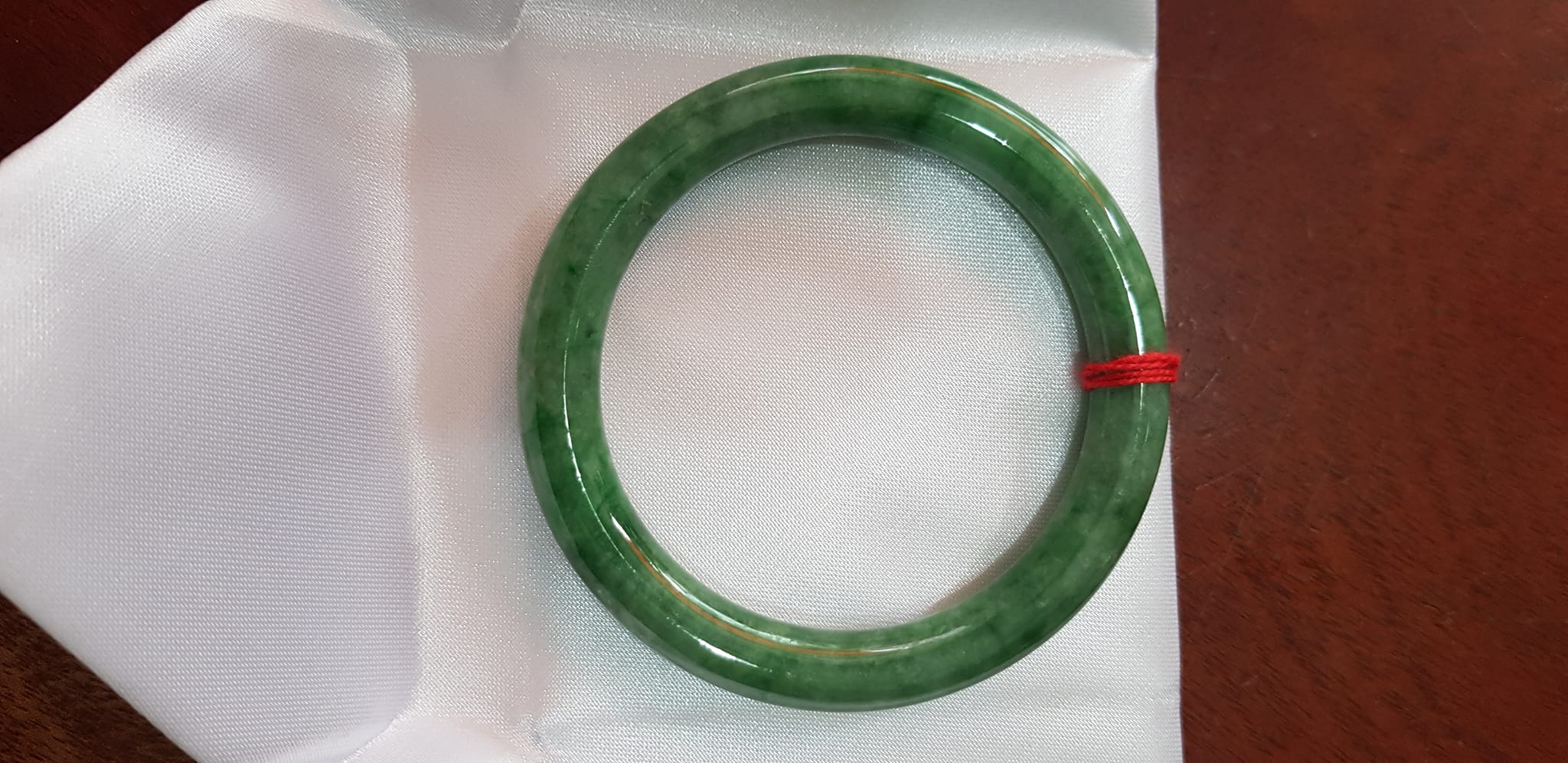 Vòng tay Nữ Đá Cẩm Thạch mới TR Lý 57 mm x cọng 7,5mm Màu Xanh lý tươi trắng 2 bên đều vòng đẹp Nữ 55kg - 64kg đeo đẹp món quà tặng chính mình