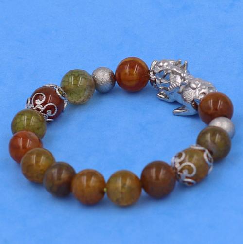 Vòng Tay Tỳ Hưu Đá Đào Hoa Rhodochrosite 14mm - Đá đào hoa Rhodochrosite Tự Nhiên 100%. - Thiết Kế Dây Co Giãn Thoải Mái. - Đá Tự Nhiên Tốt Cho Sức Khỏe. - Hình Thật
