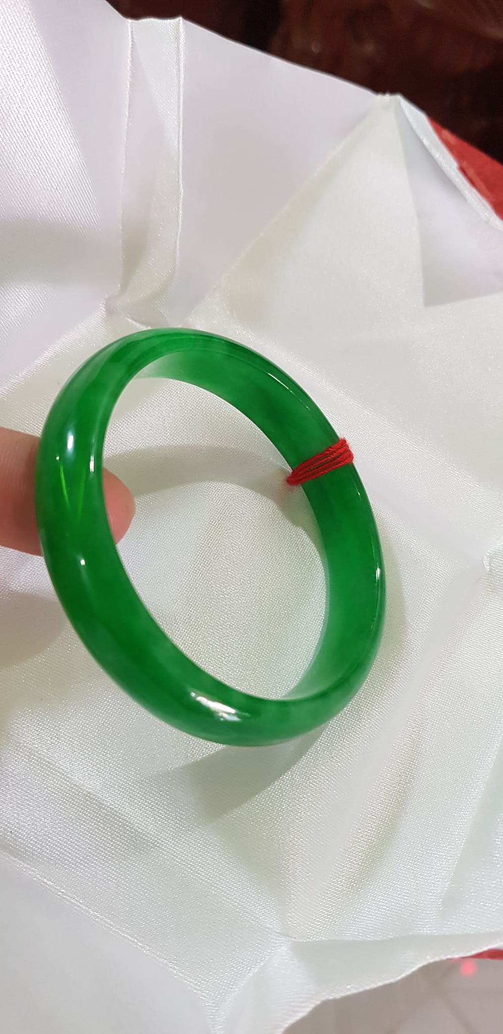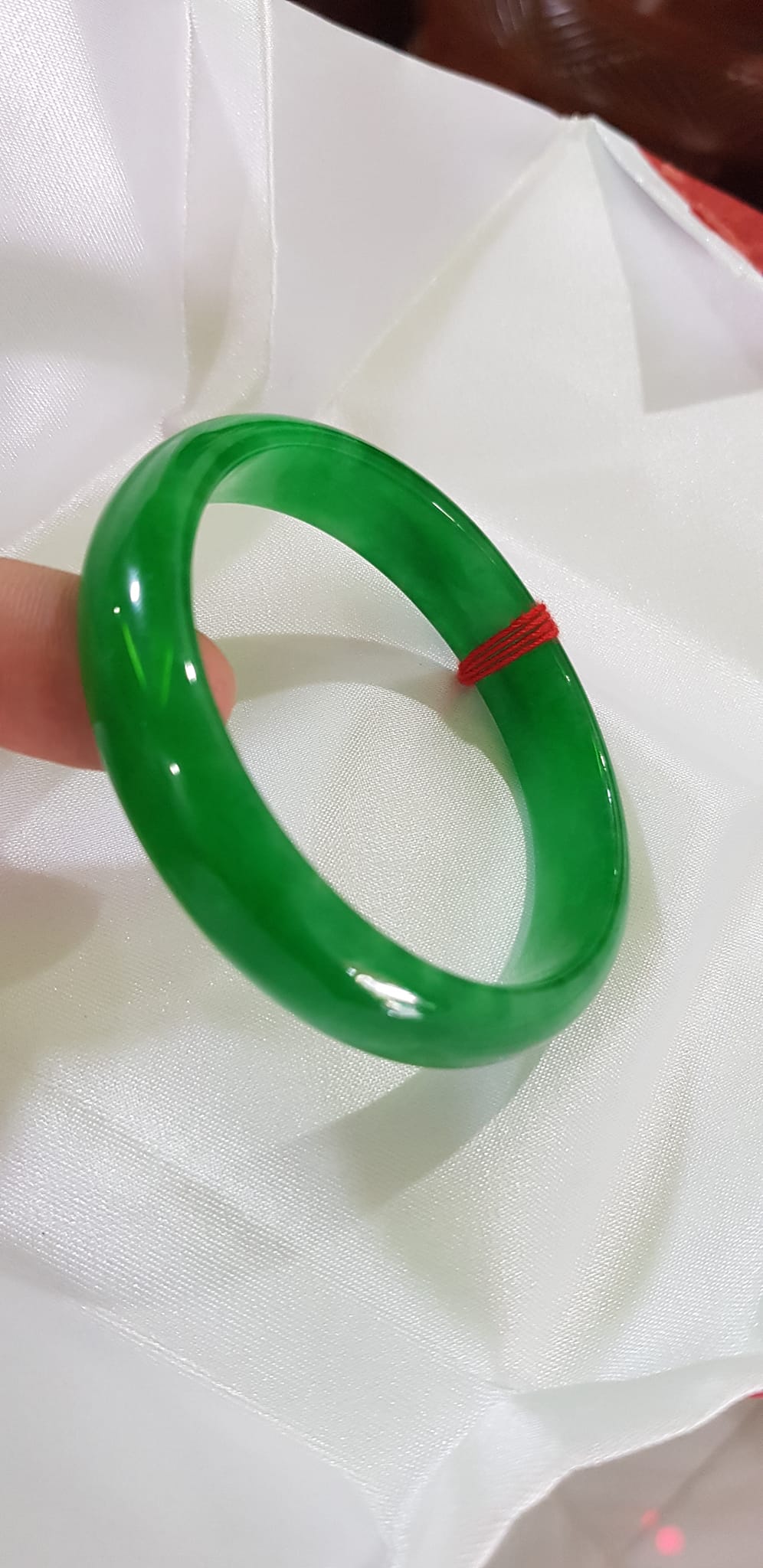 Vòng cẩm thạch Đ Lý 52mm x dầy 7,8mm màu xanh lá tươi hợp Nữ mệnh Mộc mệnh Hỏa 52kg - 56kg đeo ạ