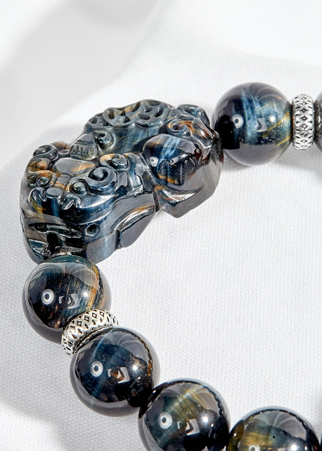 Những ý nghĩa và công dụng mà Vòng tay đá mắt hổ charm tỳ hưu bạc bọc vàng 24k mang lại Đá mắt hổ thuộc dòng thạch anh, trong thành phần của loại đá này