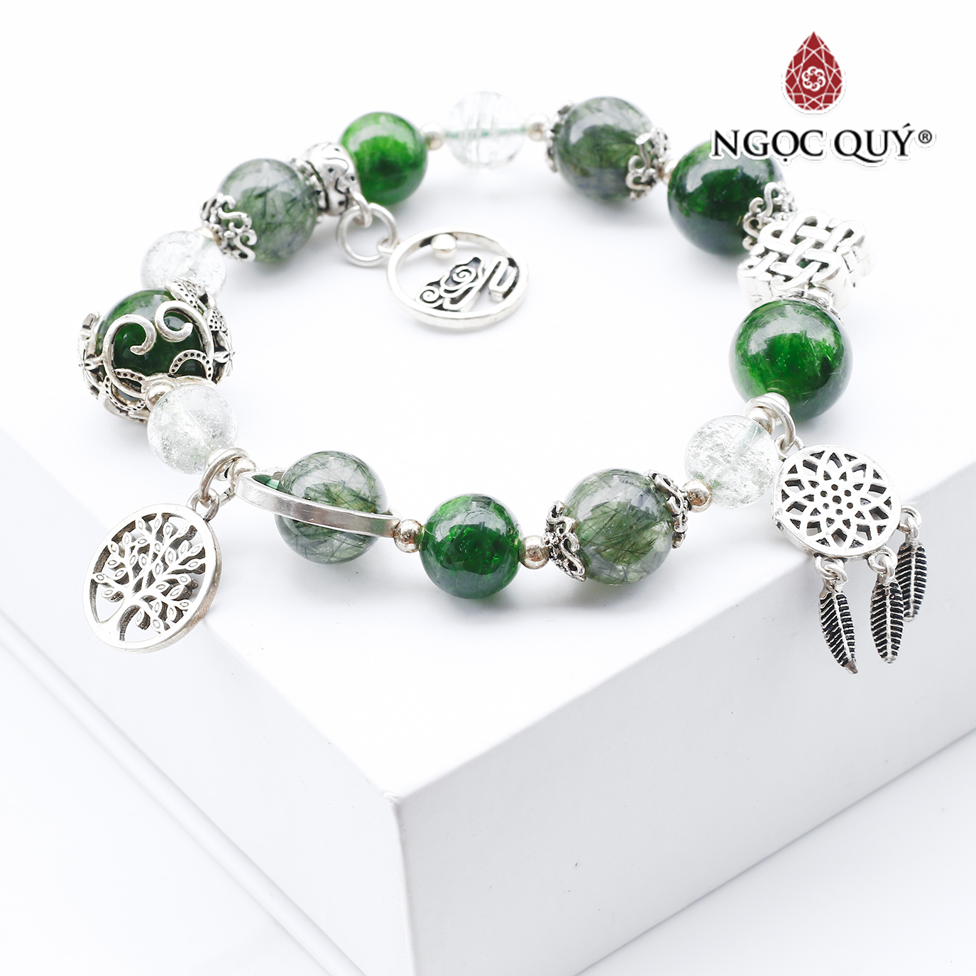 Vòng tay đá thạch anh tóc xanh phối charm bạc - Hợp mệnh mộc, hỏa | Ngọc Quý Gemstones |
