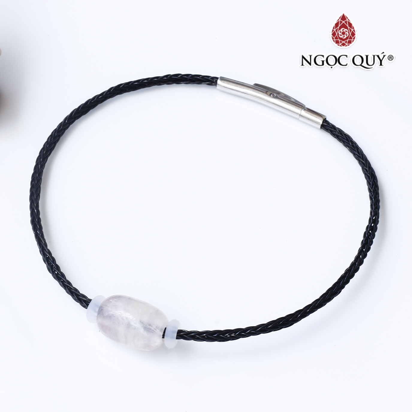 Vòng tay Lu Thống đá THẠCH ANH HỒNG mix dây thép bọc vải