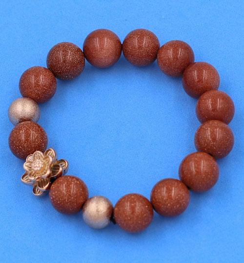 ✨Vòng đeo tay Đá Kim Sa Nâu 12 ly - Vòng Hoa Sen vàng hồng phối 2 bi - hợp mệnh Kim, mệnh Thổ