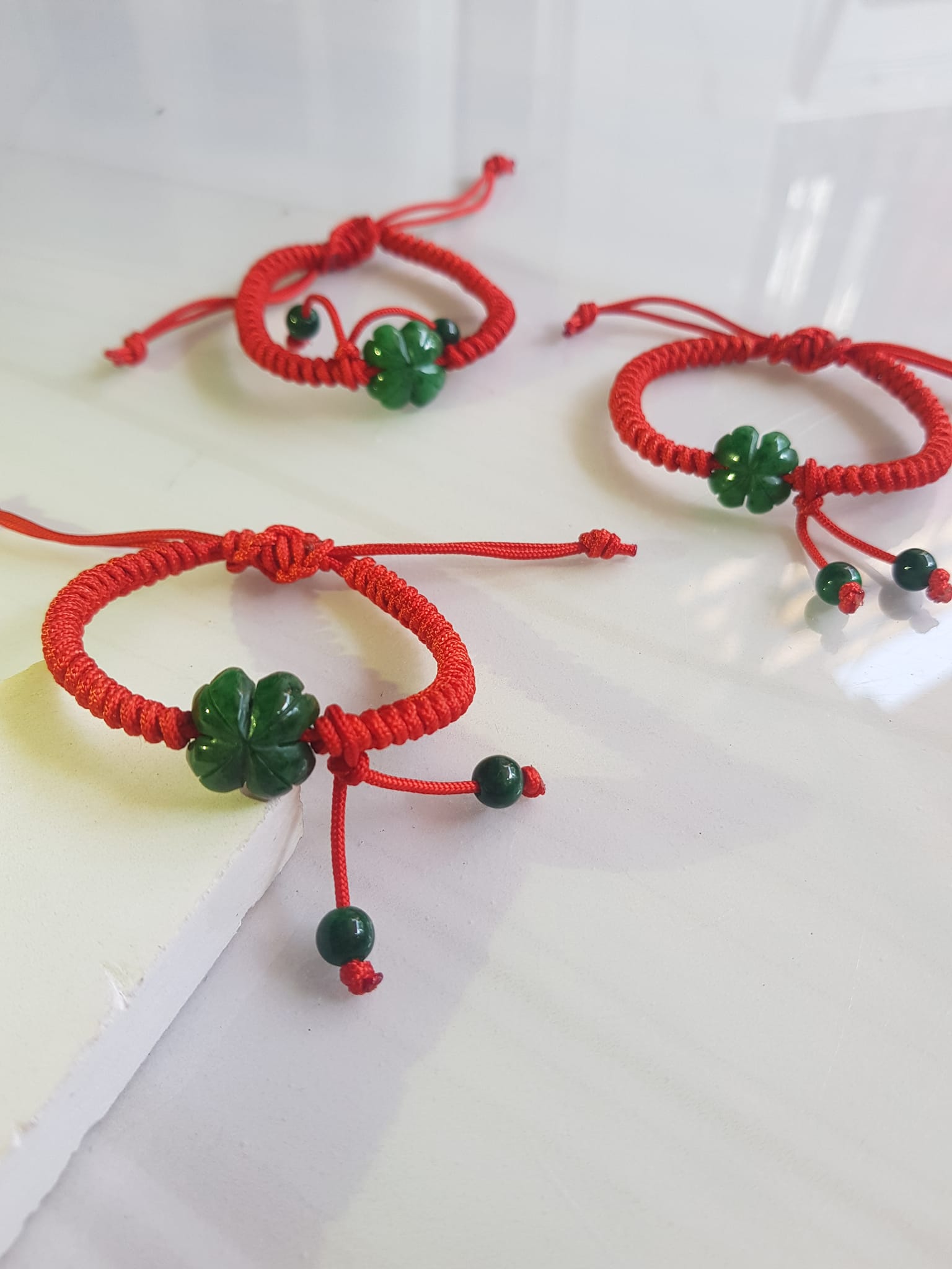 Vòng Đeo Tay Nữ Kiểu Dây Đỏ Cỏ 4 lá Xanh mới lạ đẹp lắm Chất liệu đá cẩm thạch xanh lá cỏ thắt dây kiểu đỏ rẻ đẹp  Nữ đeo tay may mắn tăng