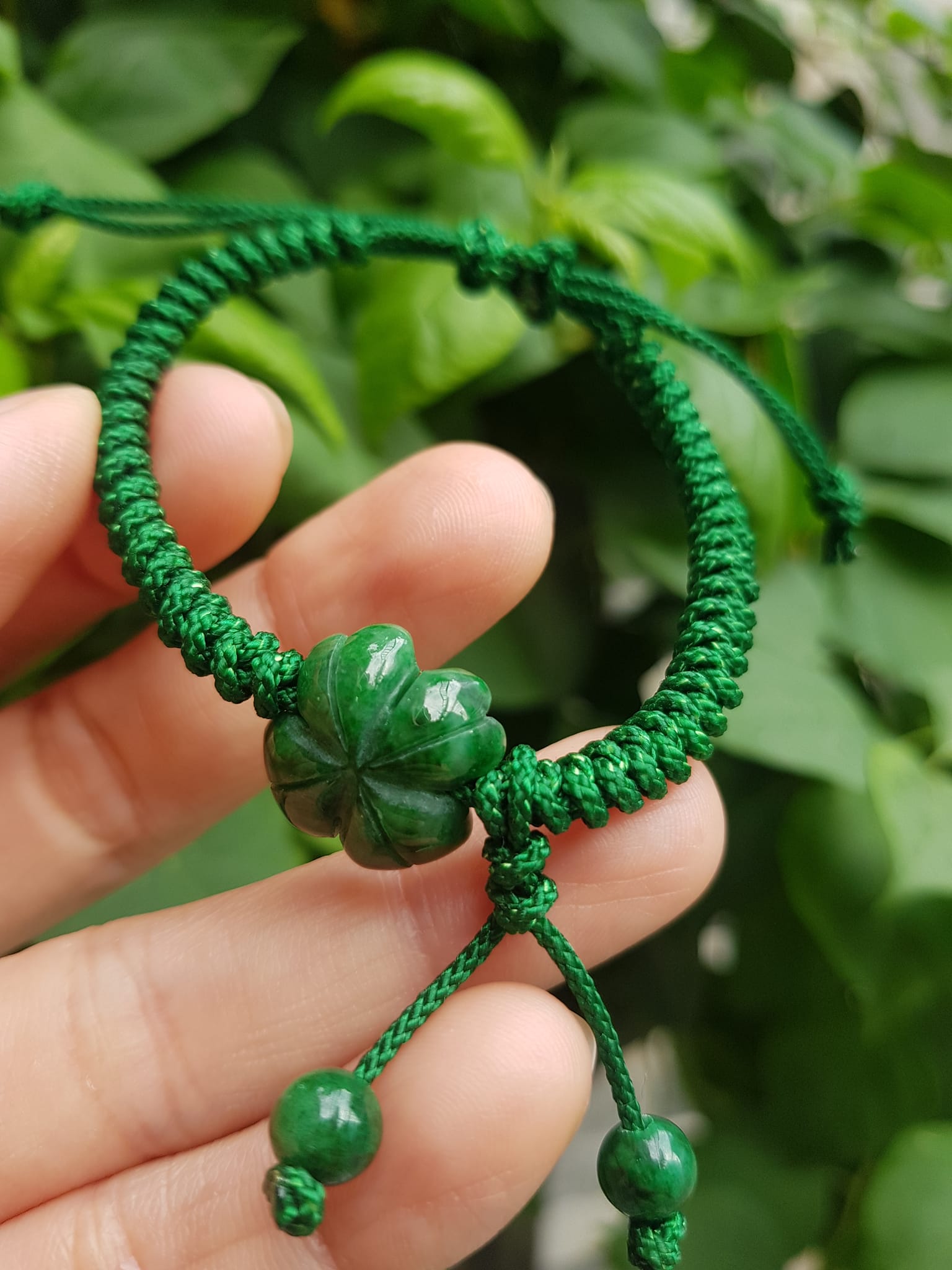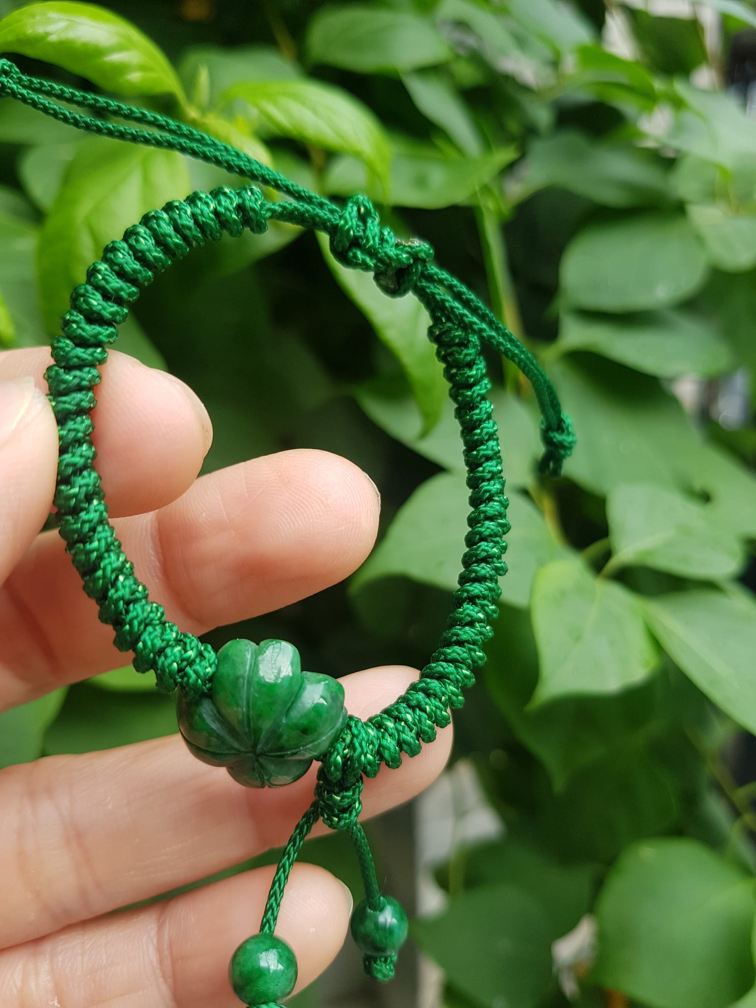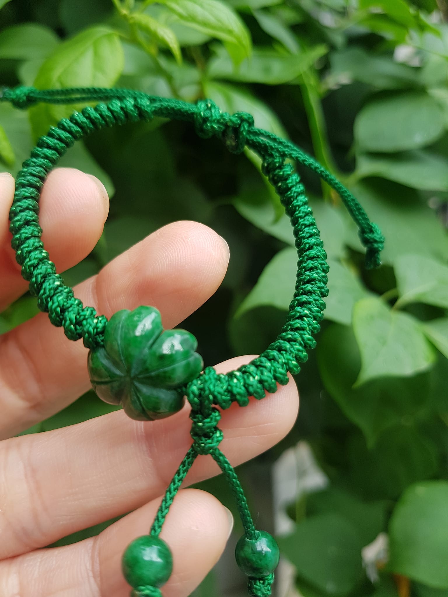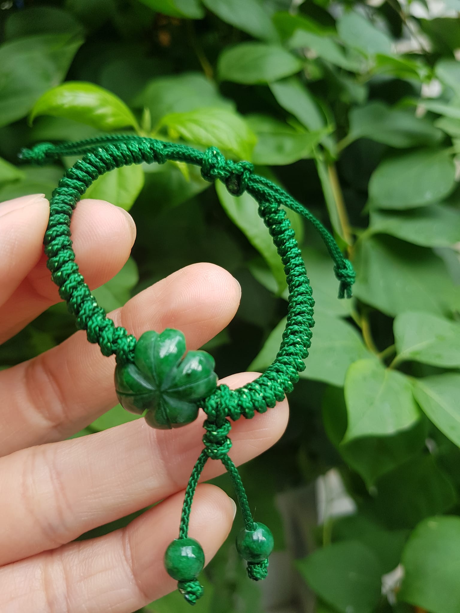 Vòng Đeo Tay Nữ Kiểu Dây Xanh Cỏ 4 lá Xanh mới lạ đẹp lắm à nha Chất liệu đá cẩm thạch xanh lá cỏ thắt dây kiểu xanh xanh rẻ đẹp lắm à nhen