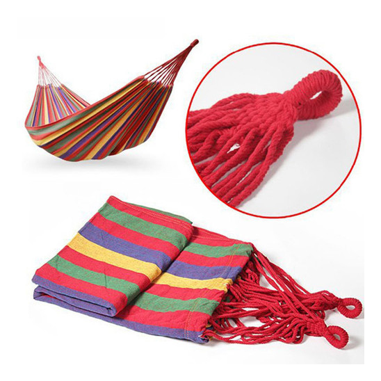 Võng vải du lịch 7 màu dễ dàng gấp gọn, sẵn sàng theo bạn cùng những chuyến picnic, du dịch, cắm trại, đi bộ đường dài, thám hiểm những nơi rừng sâu, nơi mà những chổ ngủ, nghỉ ngơi, không còn đảm bảo an toàn do nền đất ẩm ướt, hơi ẩm thì chiếc võng du lịch là sản phẩm không thể thiếu. Chất liệu vải bố dày dặn chắc chắn. Màu sắc nổi bật, sinh động, cho bạn cảm giác sôi động, vui tươi vào những dịp dã ngoài ngoài trời. Thiết kế chuyên dụng cho các chuyến du lịch, thuận tiện cho dân đi phượt, đi dã ngoại… Sức chứa 120kg Kích cỡ (D x R): 180cm x 80cm 2 dây thừng 2 đầu được bện bằng dây đai, mật độ cao, đan chéo, chịu lực tốt lên đến 120kg Võng du lịch được thiết kế dáng cầu vồng, 2 đầu dây chắc chắn cùng dây dù đi kèm. Có thể buộc ở bất cứ đâu có cây, cọc…Có túi tặng kèm để gập gọn khi không có nhu cầu sử dụng Võng vải du lịch dã ngoại 2 lớp - Cho giấc ngủ êm dịu hơn bao giờ hết