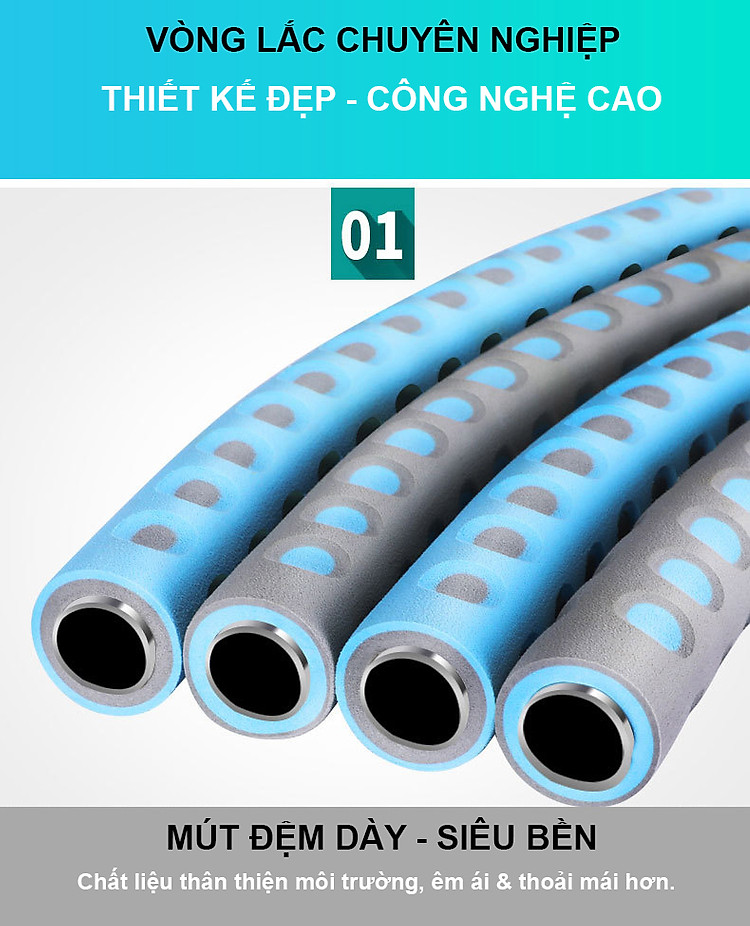 - Đặc biệt : Tăng cường rãnh (4 mặt) nâng cao tối đa hiệu quả, Đường kính lớn hơn các vòng lắc thông thường, Miếng mút đệm dày hơn tạo độ êm ái.