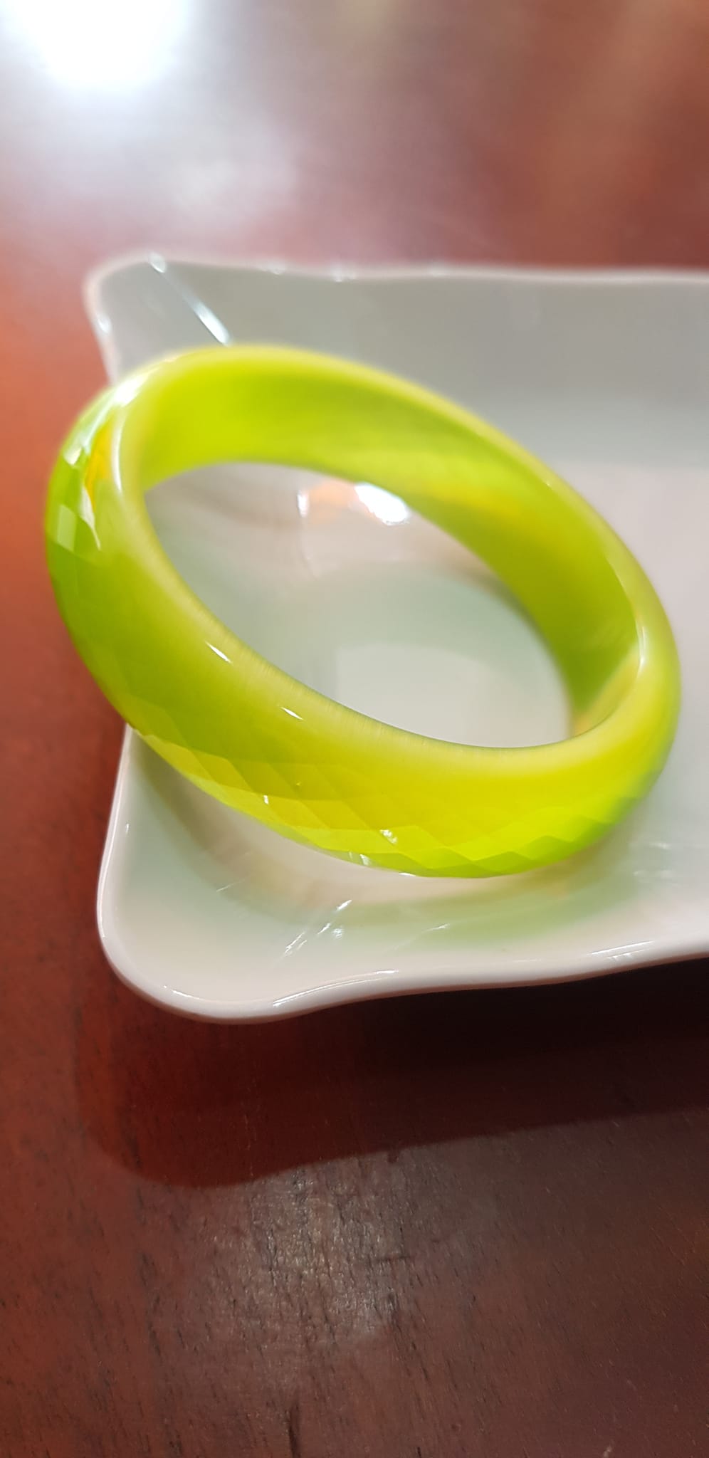 Vòng tay bản hẹ đá mắt mèo giác xanh đợt chuối tươi sáng mới đẹp lạ vòng Ni 55mm Cao 15mm dầy 7mm