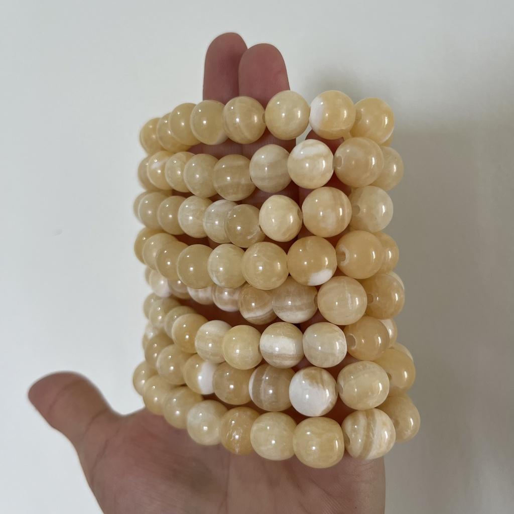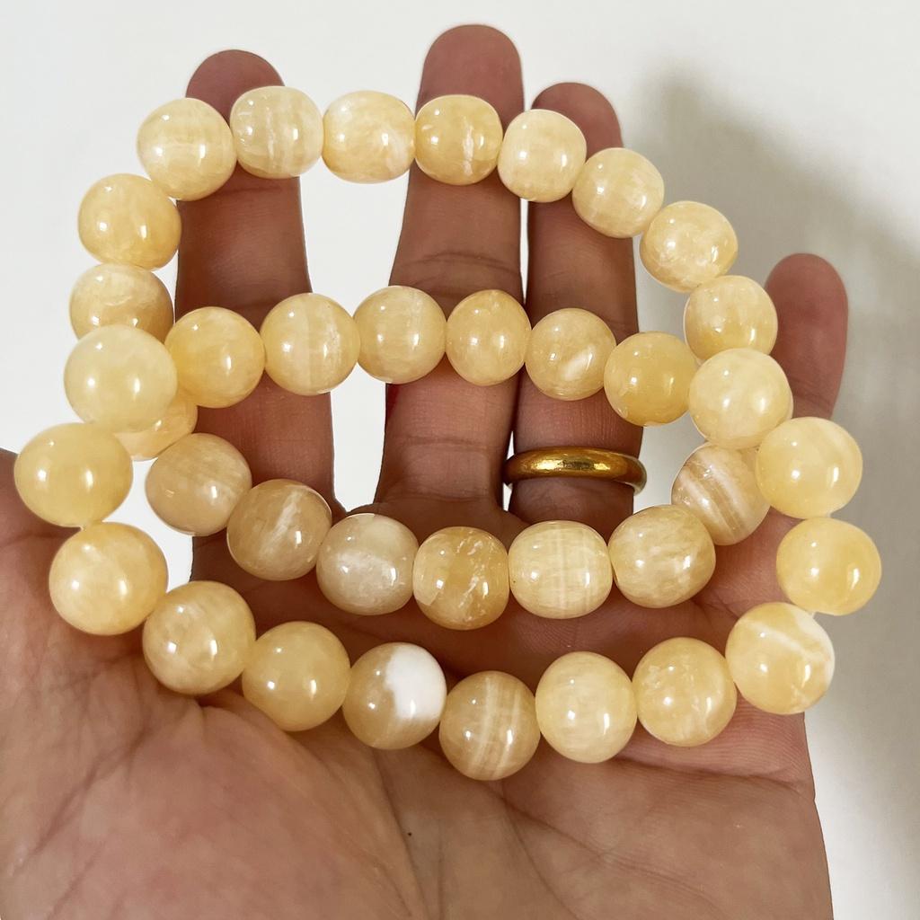 ✨Vòng tay chuỗi hạt ngọc thật màu vàng cam cho người mệnh Thổ và hỏa đường kính hột 10 li (1cm)