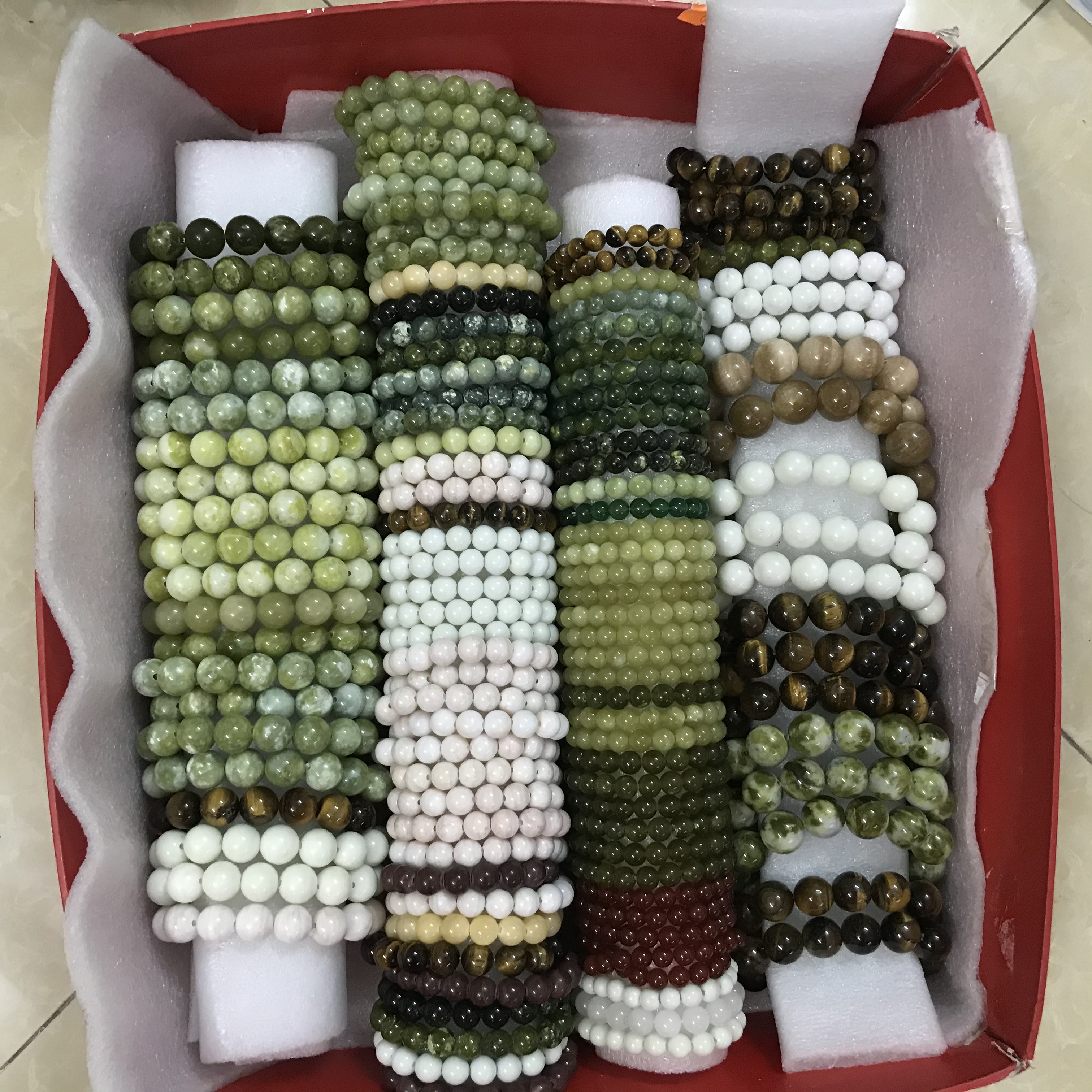 - Kích thước: Li vòng là 10 li (1cm), đá ngọc thật có nhiều vết rạn, tinh thể của dòng ngọc thật, trẻ trung và thanh lịch Dùng để lần tràng hạt khi tụng kinh hoặc đeo tay như bình thường cho cả nam và nữ