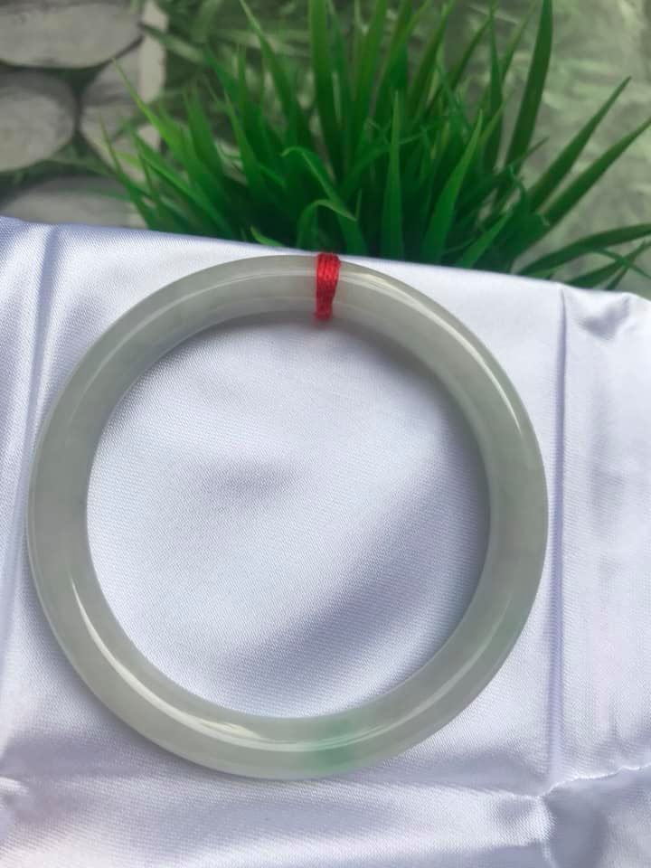 Vòng Cẩm Thạch tự nhiên trắng lý bóng sịn đẹp Ni 54mm x cọng 8mm nữ đeo vòng tay sang ạ #54mm