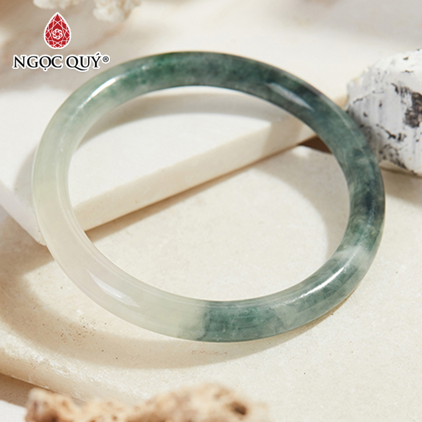 Vòng tay đá cẩm thạch xanh ly bản tròn