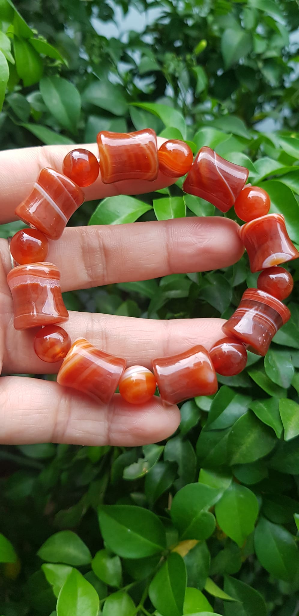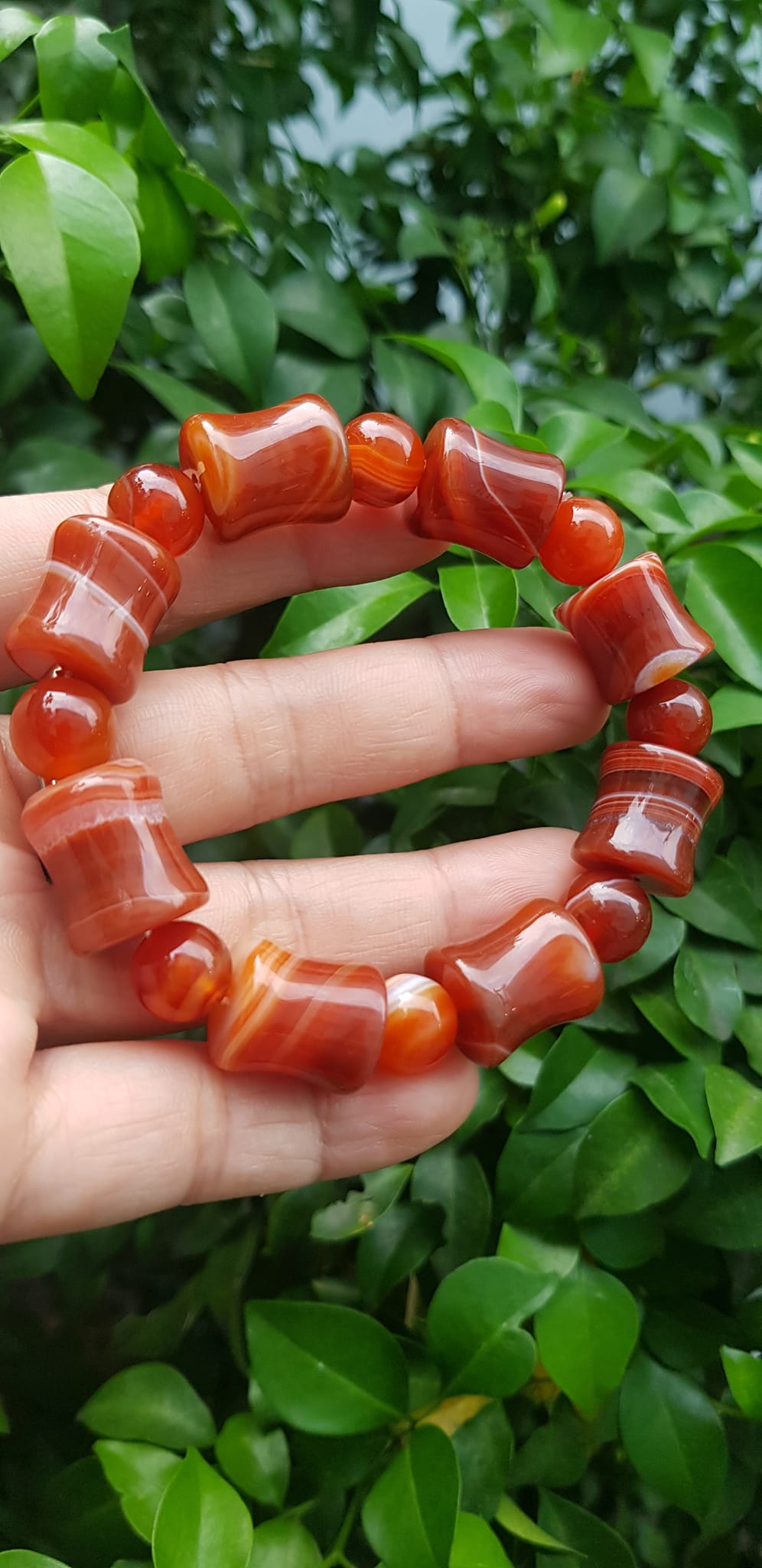Vòng tay nữ đá mã não đỏ vân đẹp mới Ni 54mm x cọng 8,5mm nữ mệnh hỏa mệnh thổ 52kg - 60kg đeo ạ