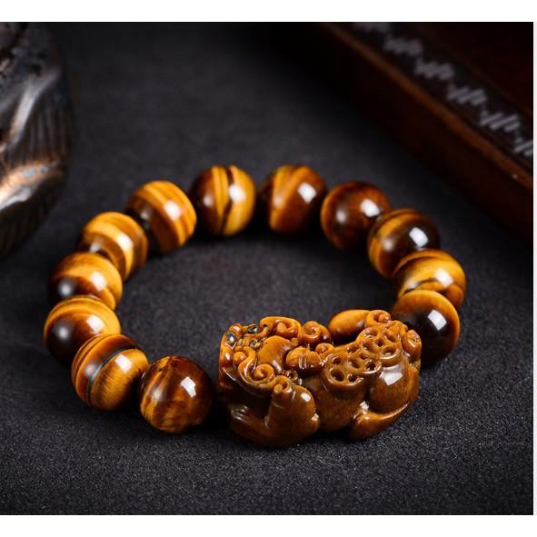 vòng đá mắt hổ nâu đỏ 12 ly mix tỳ hưu cao cấp I Trang sức vật phẩm phong thủy