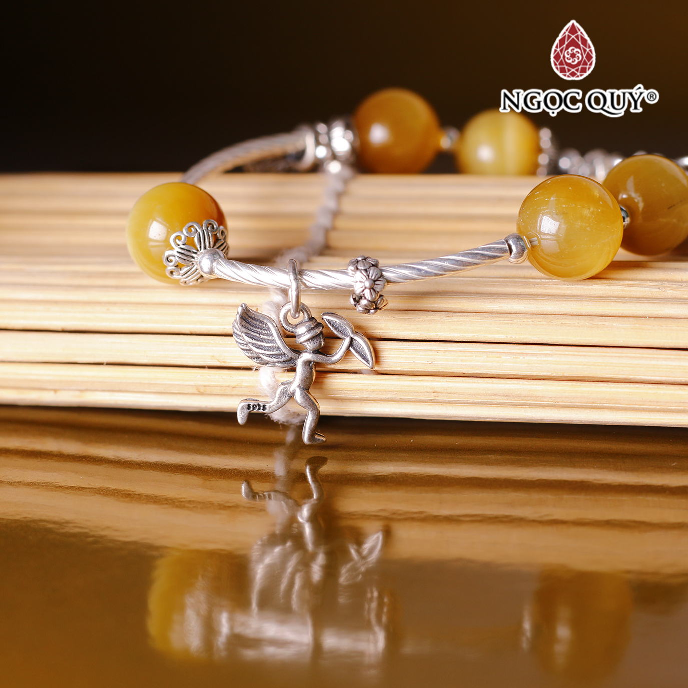 ✨Vòng tay đá mắt hổ vàng tâm mix charm bạc túi tiền & thiên thần tình yêu mệnh thổ , kim - Ngọc Quý Gemstones