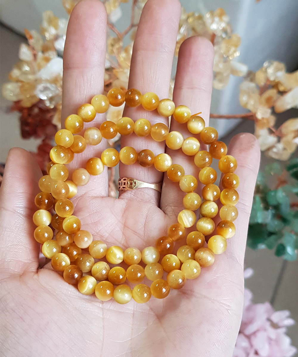 Vòng tay đá mắt hổ vàng anh vip 6mm quấn tay 3 vòng đẹp màu vàng anh tươi đẹp Shop Sunny Quận 8 #6mm