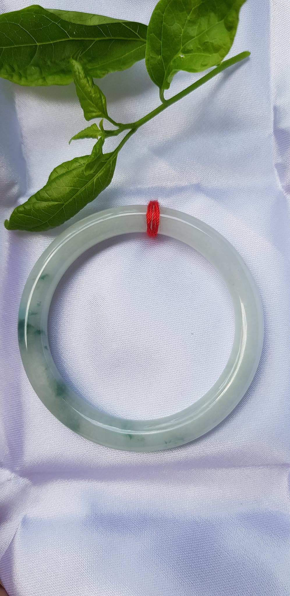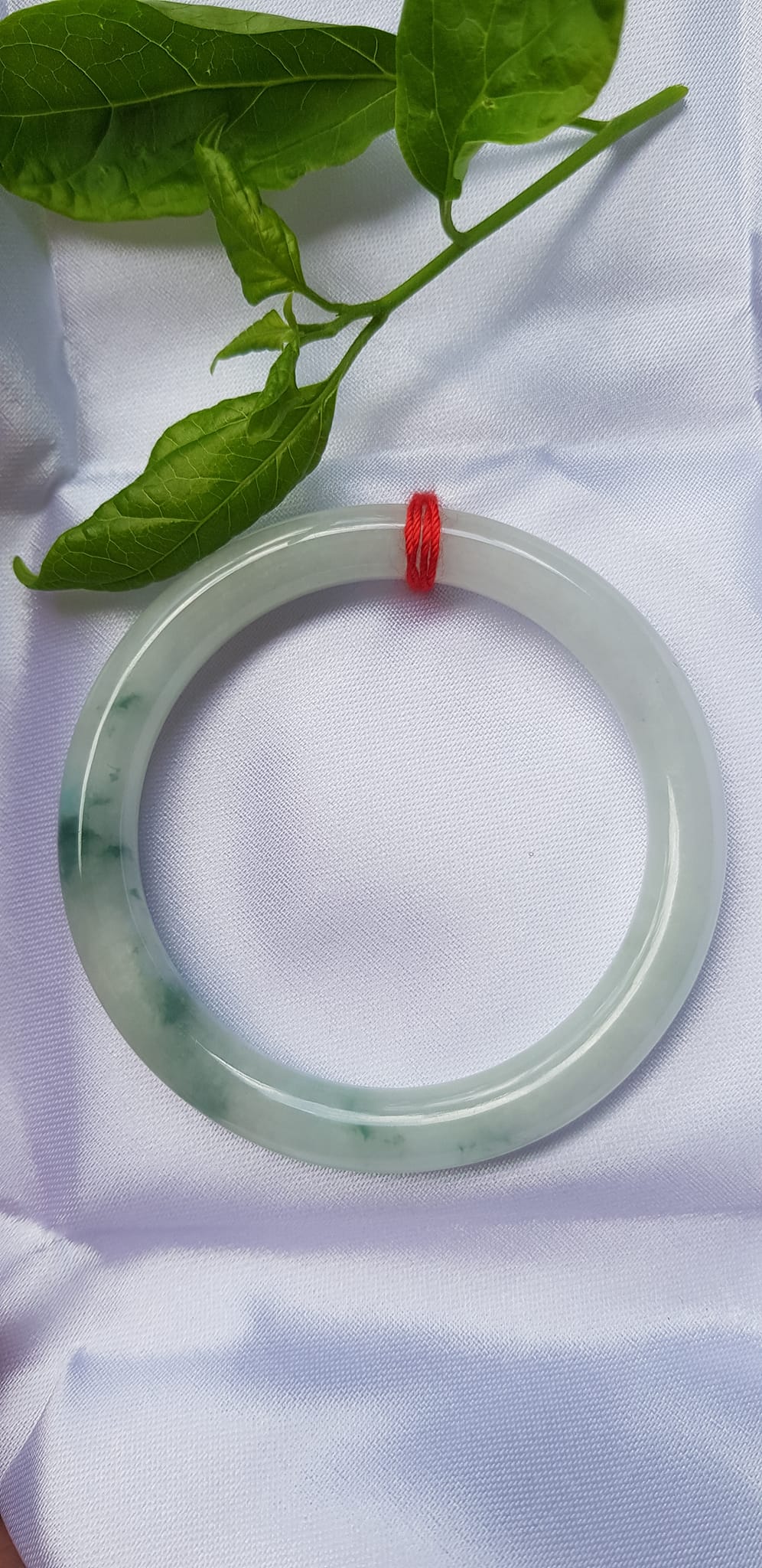 ✨Vòng Tay Đá Ngọc Cẩm Thạch tự nhiên TR LÝ 49mm x cọng 7,2mm Màu bạch ngọc trắng bóng điểm lý xanh rêu rất là đẹp sang Nữ mệnh Kim, mệnh Thủy năngh 47kg - 51kg đeo đẹp ạ