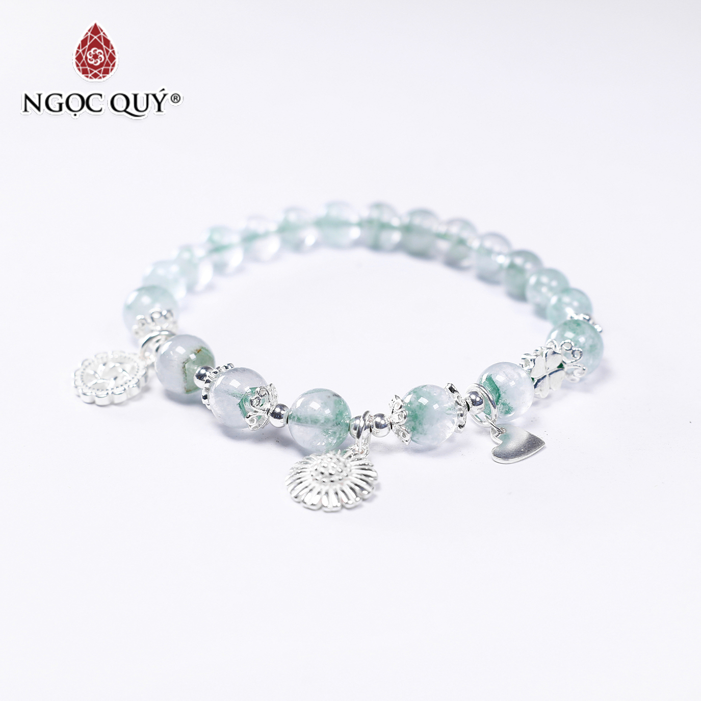Vòng Tay Đá Thạch Anh Ưu Linh Xanh Phối Charm Hoa Cúc