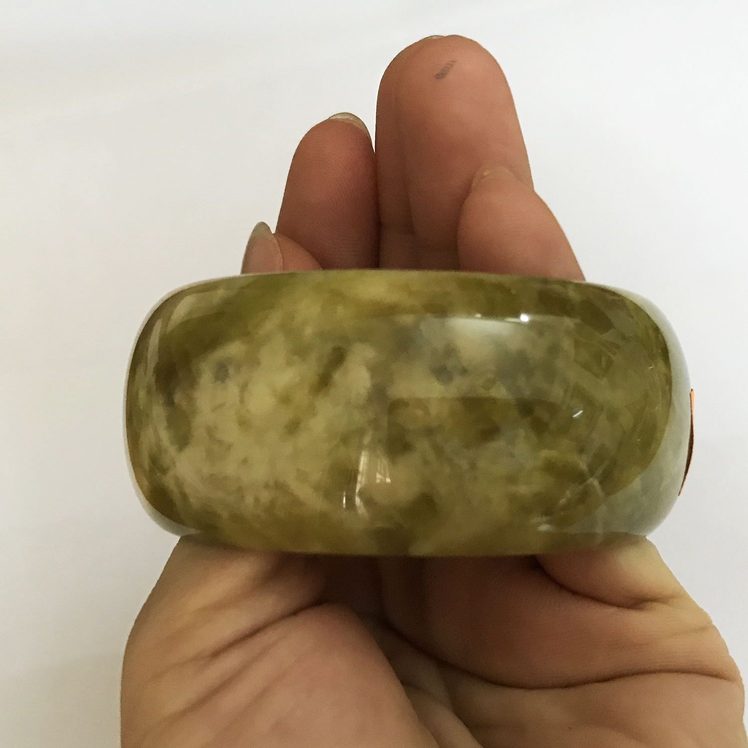 - Kiểu dáng: Bản hẹ, bản dẹp, bản to, bản dày hay bản cao 3cm, chắc nặng, dày và mát tay, rất độc đáo , tất cả là hình chụp thật, không chỉnh sửa , bên ngoài màu sáng và bóng hơn trong hình. Còn cũng có nhiều size và nhiều màu khác từ đá ngọc thật Có nhiều màu khác để lựa chọn như xanh đen, xanh cốm, trắng, vàng nhẹ, vàng ô liu, xanh nõn chuối, hồng đỏ, hồng đen đen, trắng tất cả đều từ đá thật đá tự niên của VN) ***CÁCH ĐO TAY VÀ VÒNG TAY: Lấy thước dây hoặc miếng giấy quấn xung quanh gù bàn tay cần đeo ( sau khi đã khum tay lại ) tưởng tượng chiếc vòng sẽ lọt qua chỗ to nhất và cứng nhất của bàn tay nhất khi đã khum bàn tay lại (mục đích là cho chiếc vòng có thể lọt qua) xem được bao nhiêu cm (nếu là miếng giấy thì đo lại miếng giấy để biết). Rồi so sánh bảng sau. và tên vòng có size của vòng, Tìm trên gian hàng này có nhiều loại khác nhau từ nhỏ nhất cho đến size bự nhất là 7.2 ( cho người trên 100 kg) Chu vi tay dài 17cm thì size vòng là 5.2 cm Chu vi tay = dài 18cm thì size vòng là 5.4cm/ chu vi tay dài 19cm thì size vòng là 5.6 cm Chu vi tay = dài 20cm thì size vòng là 5.8cm/ chu vi tay dài 21cm thì size vòng là 6.0 cm 5.Tại sao nên đeo ngọc thật hay đá thật? Vì nó mang năng lương dương do sự biến đổi chịu tác động của nhiệt độ rất cao trong lòng đất hàng triệu năm mà hình thành nên đá. Ngọc cũng là đá nhưng nó có độ trong và xuyên thấu ánh sáng, nó đẹp và hiếm hơn đá. Được tìm thấy ở một số nơi ở VN như tỉnh Yên Bái. Những chiếc vòng ngọc này còn gọi là đá cẩm thạch, đá ngọc serpentine được chọn tỉ mỉ từ những tảng đá tự nhiên nguyên khối. Không phải tảng đá nào cũng có chất ngọc trong vắt bên trong (màu trong thấu đèn nằm trong đá gọi là ngọc) Chất này được cưa cắt từ tảng đá và chế tác thủ công thành trang sức. Nên nó có năng lượng dương rất tích cực, Mang đá bên mình để “ nhân hữu thạch tất khang” ( Người có đá tất sẽ khỏe mạnh). Vì vậy nó có lợi cho sức khỏe Giá của nhà chế tác thủ công nên khách được dùng hàng thật với gốc của gia đình sản xuất