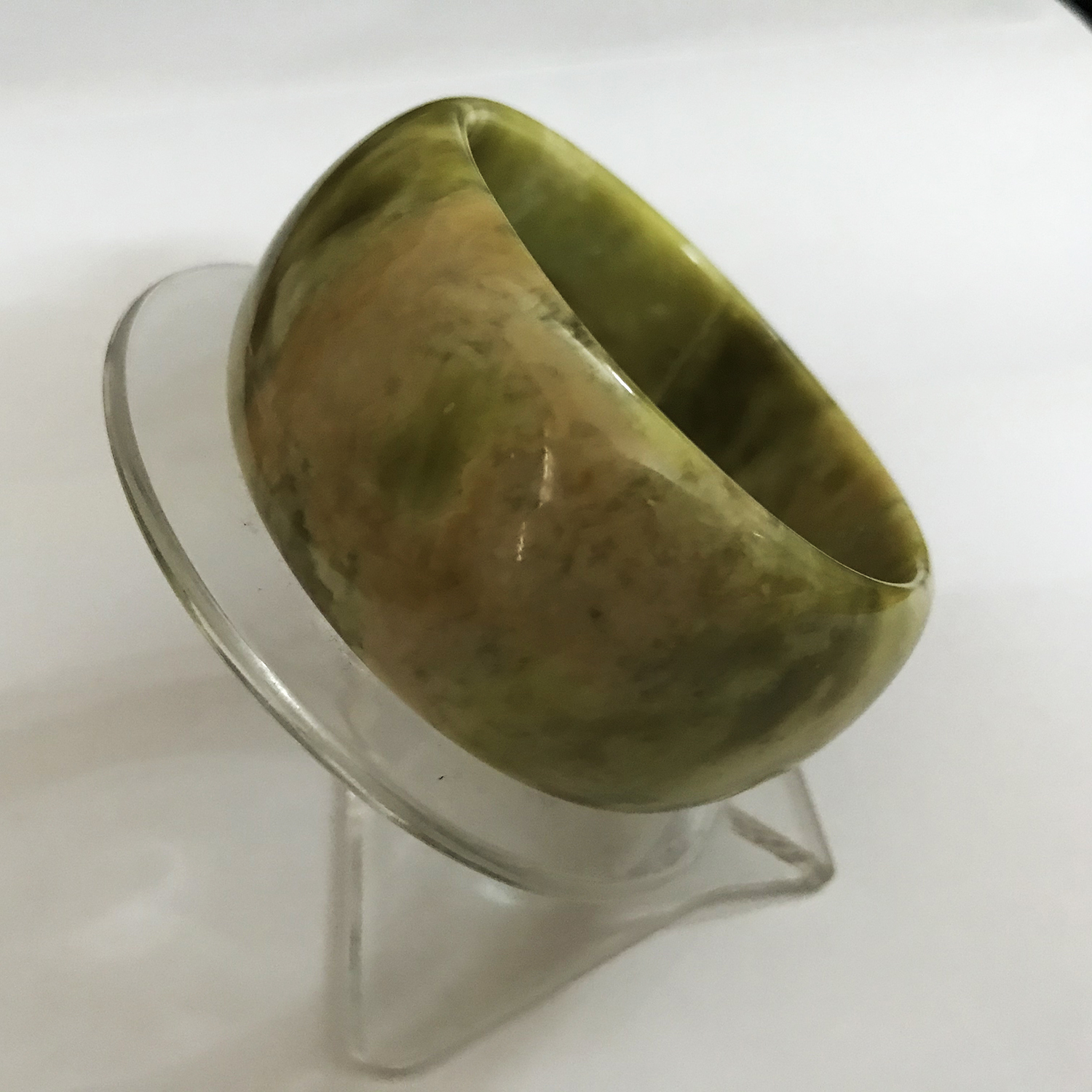 1.Chất: Đá ngọc Serpentine xanh lá nhạt 100% đá tự nhiên khai thác và chế tác tại Việt Nam, màu sắc đẹp y như hình 2. Kích thước: Chiều cao của vòng là 2.5-2.9 cm.