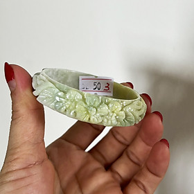 Vòng tay Nữ Đá Cẩm Thạch mới TR Lý 57 mm x cọng 7,5mm Màu Xanh lý tươi trắng 2 bên đều vòng đẹp Nữ 55kg - 64kg đeo đẹp món quà tặng chính mình