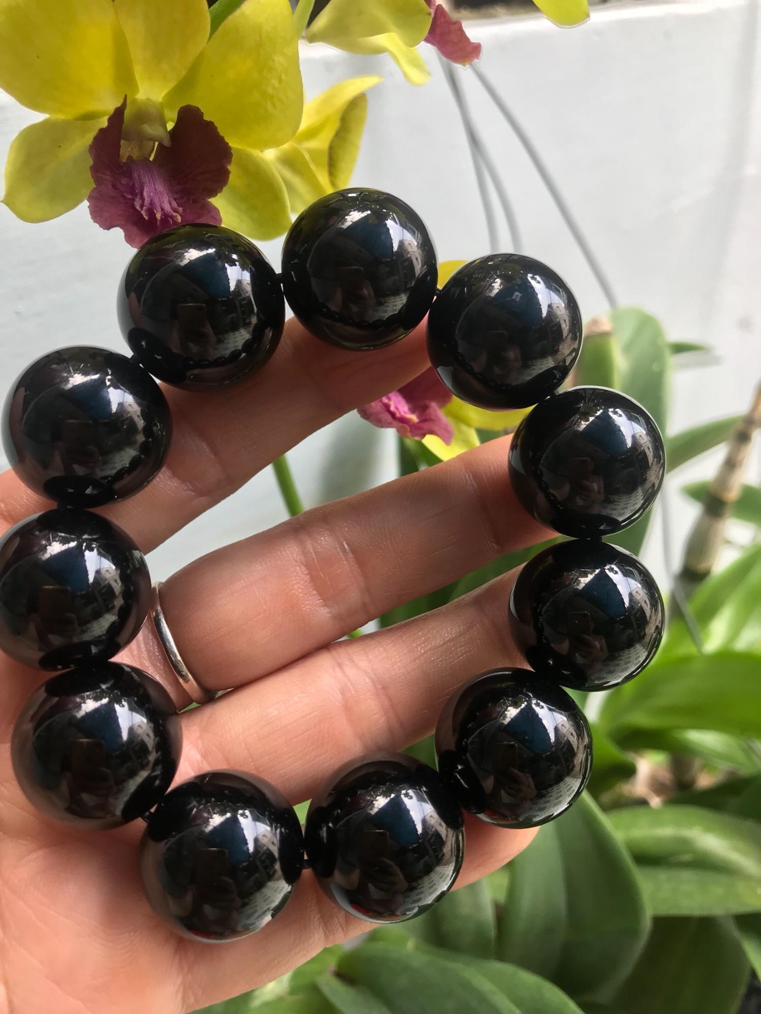 ✨VÒNG TAY HẠT LỚN ĐÁ MÃ NÃO ĐEN 20LY NAM ĐEO MỆNH THUỶ MỘC