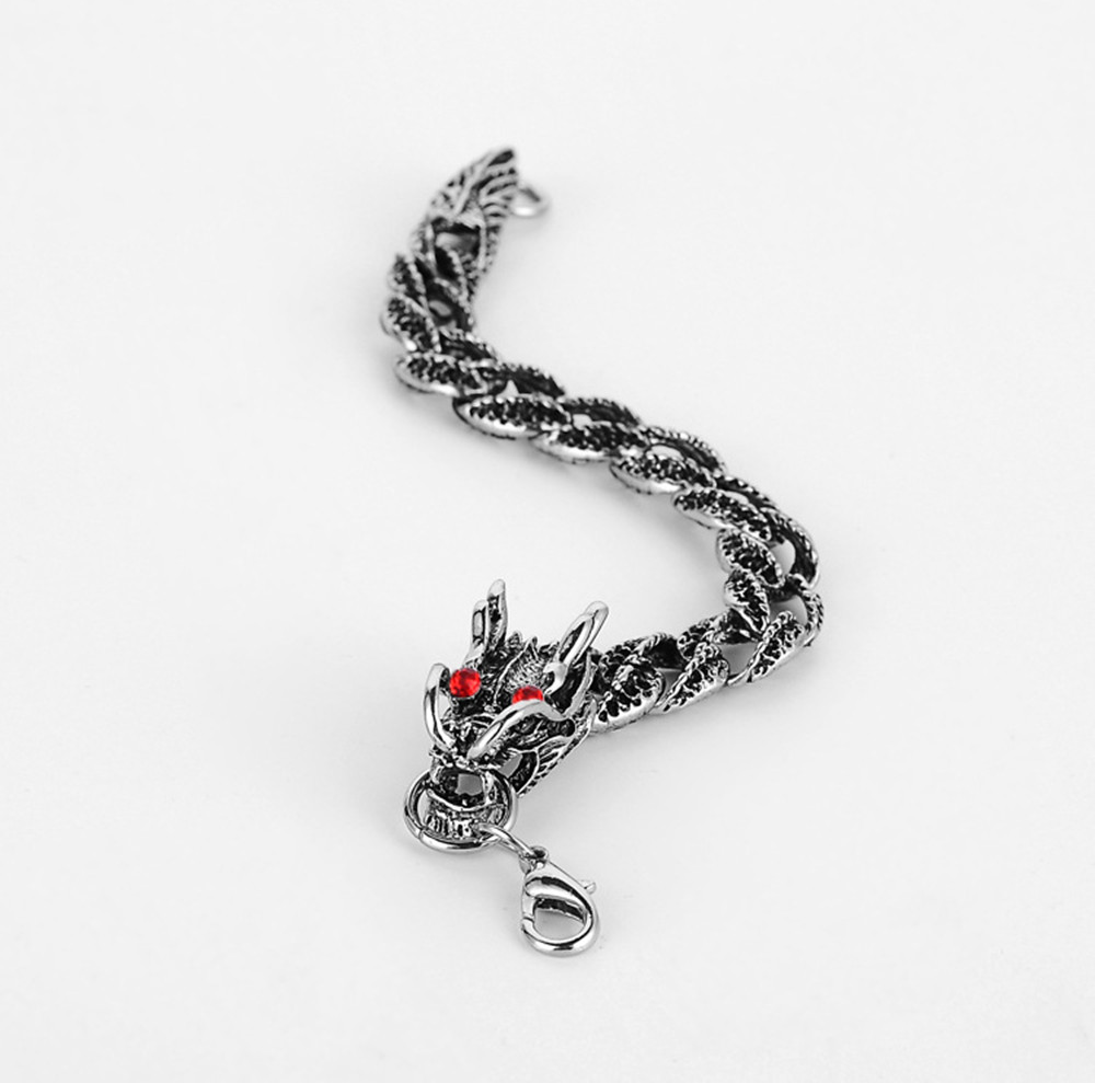 Lắc tay nam cá tính mạnh mẽ Họa tiết rồng sắc xảo từng chi tiết Màu sắc: Màu bạc mắt rồng đỏ Kích thước : 20cm chiều dài bề dày 1cm Phong cách cá tính nam tính Những lưu ý trong quá trình sử dụng