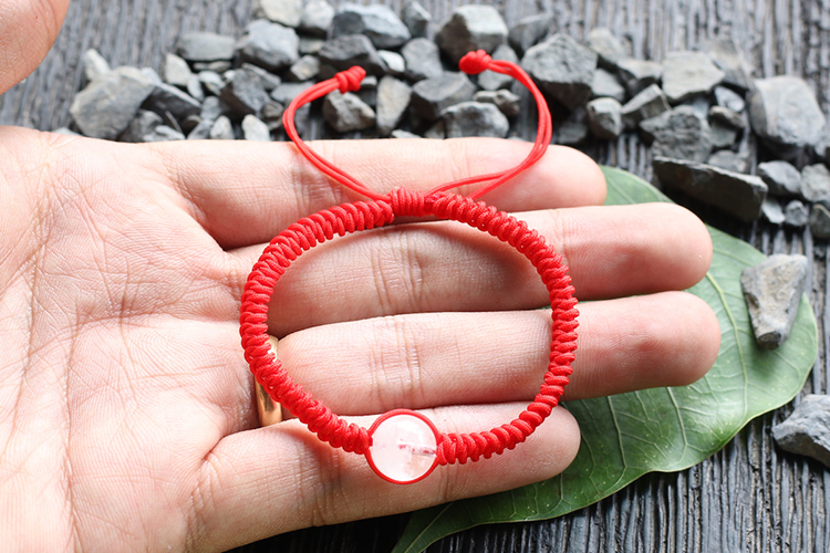 Vòng tay Charm Đá Đào Hoa hồng tươi tự nhiên bóng đẹp phối dây đen may mắn có khoen chỉnh theo tay lớn nhỏ được Nữ mệnh hỏa, mệnh thổ đeo xinh tay may mắn