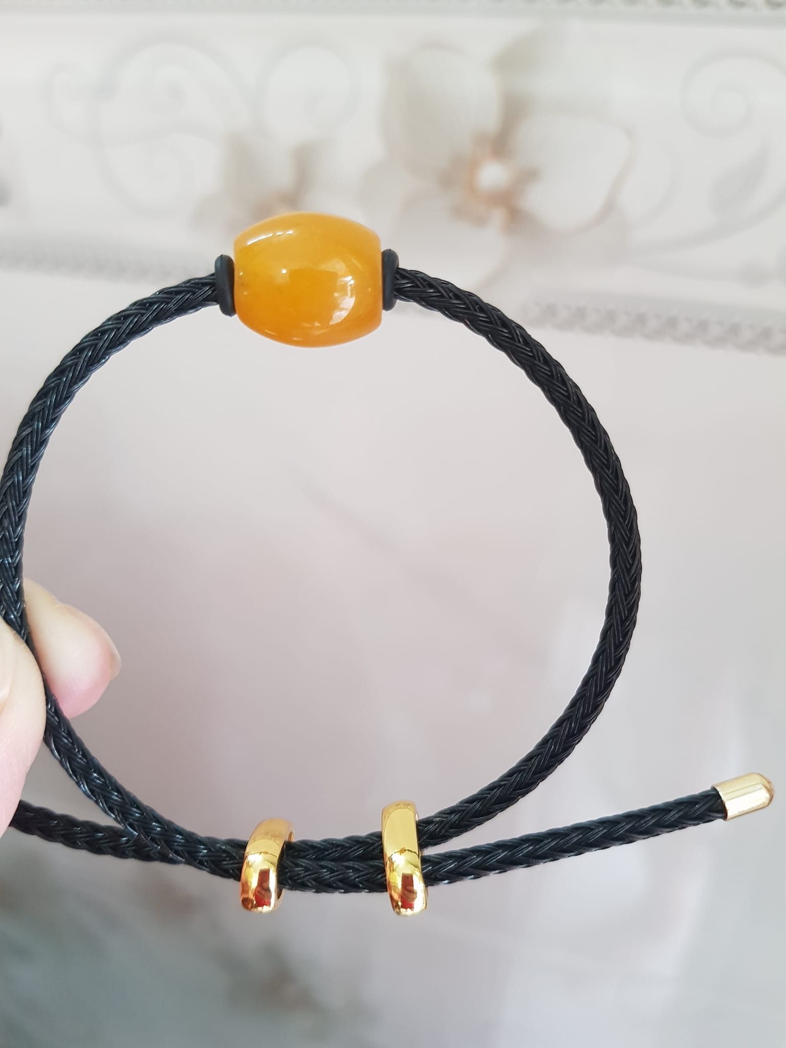 đá mã não vàng anh đẹp với dây đen kiểu rút