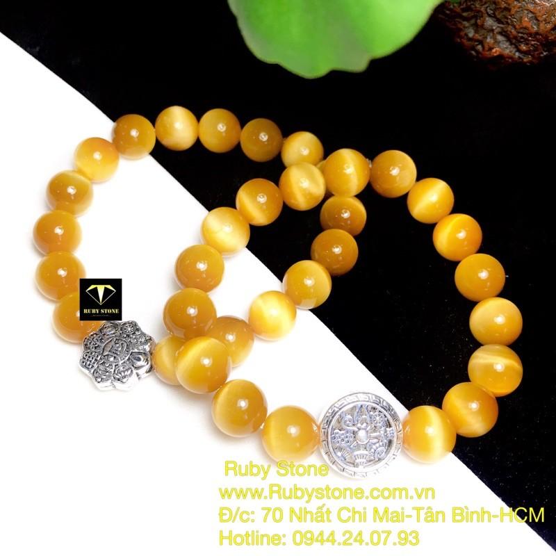 Vòng tay mân côi đá mắt hổ vàng tâm - Hợp Mệnh Kim & Thổ [ Ngọc Quý ]