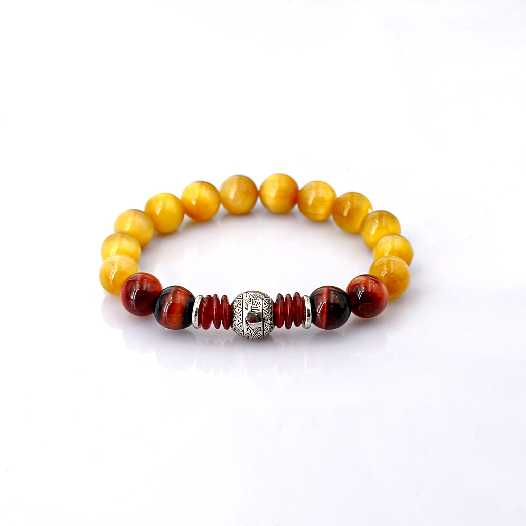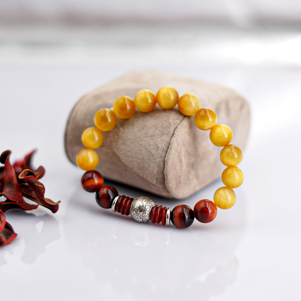 Vòng tay phong thủy Mắt hổ vàng tâm 8mm + Khoen mã não by Anqlo là sản phẩm được chế tác tinh xảo, có độ hoàn thiện cao bởi các nghệ nhân lâu năm trong