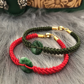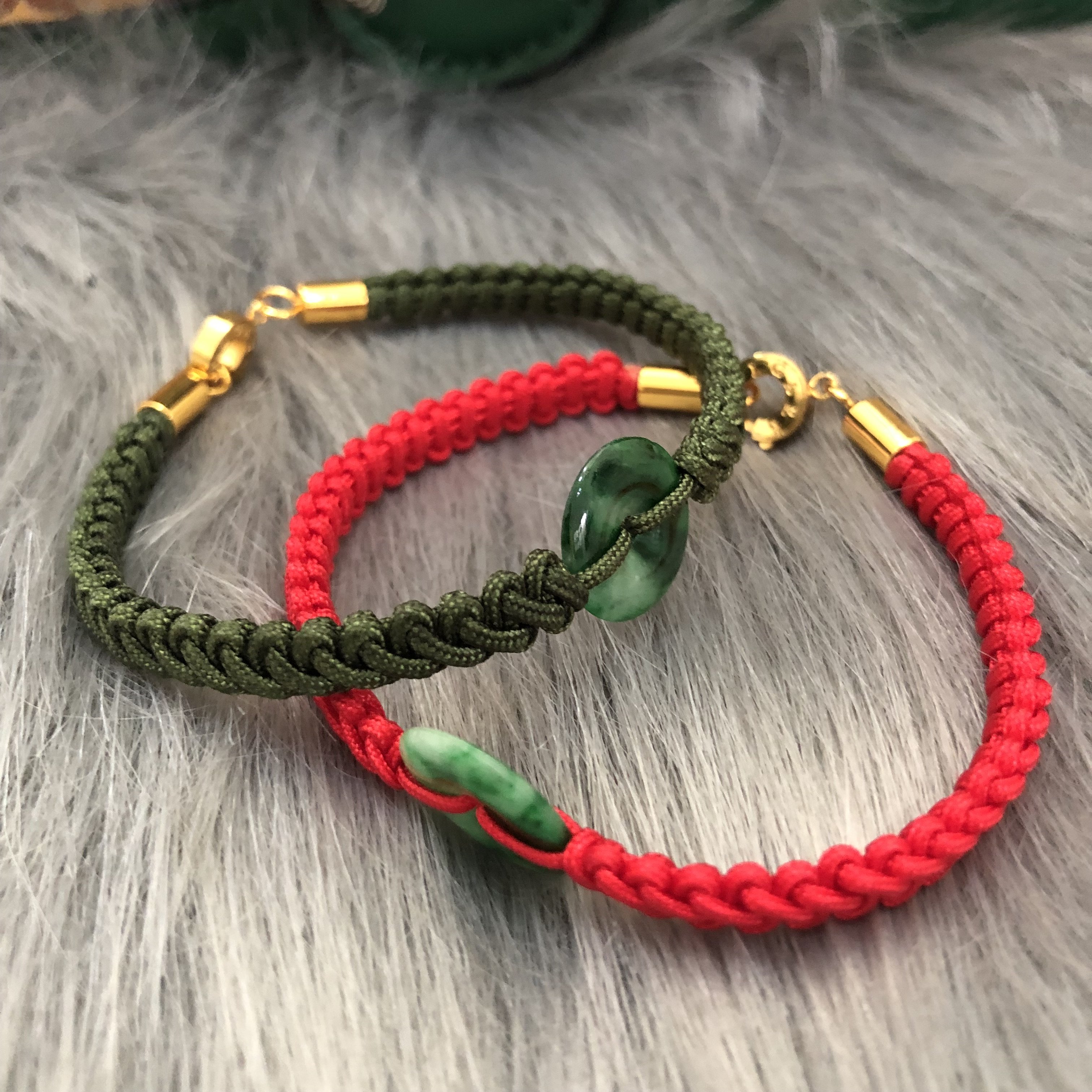 Vòng Tay Dây Đỏ Đồng Tiền Điếu Đá Cẩm Thạch Trắng Xanh Nhẹ Bóng Đẹp Nữ đeo tay may mắn xinh tài lộc
