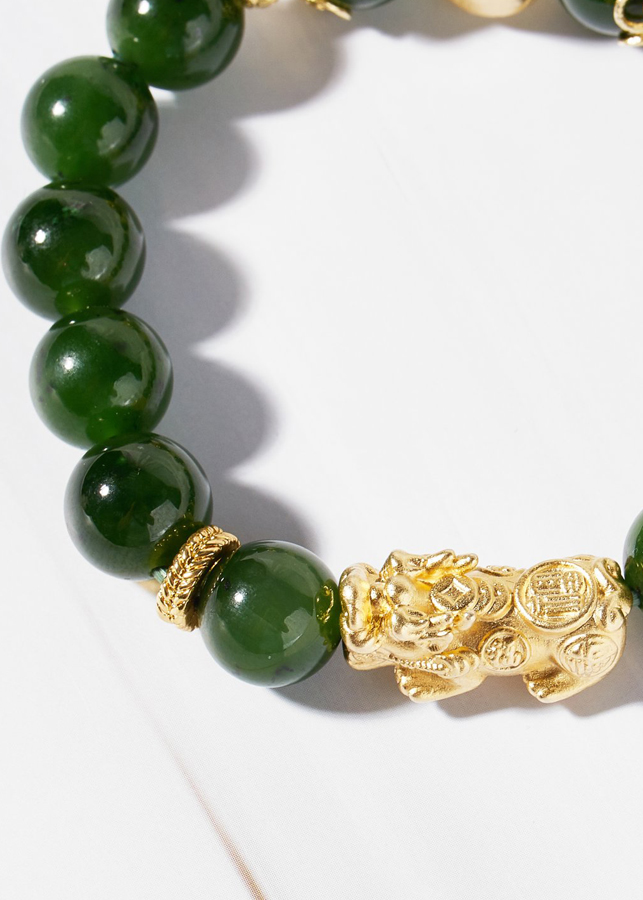 Vòng tay ngọc bích phối tỳ hưu bạc mạ vàng 24k Ngọc Quý Gemstone